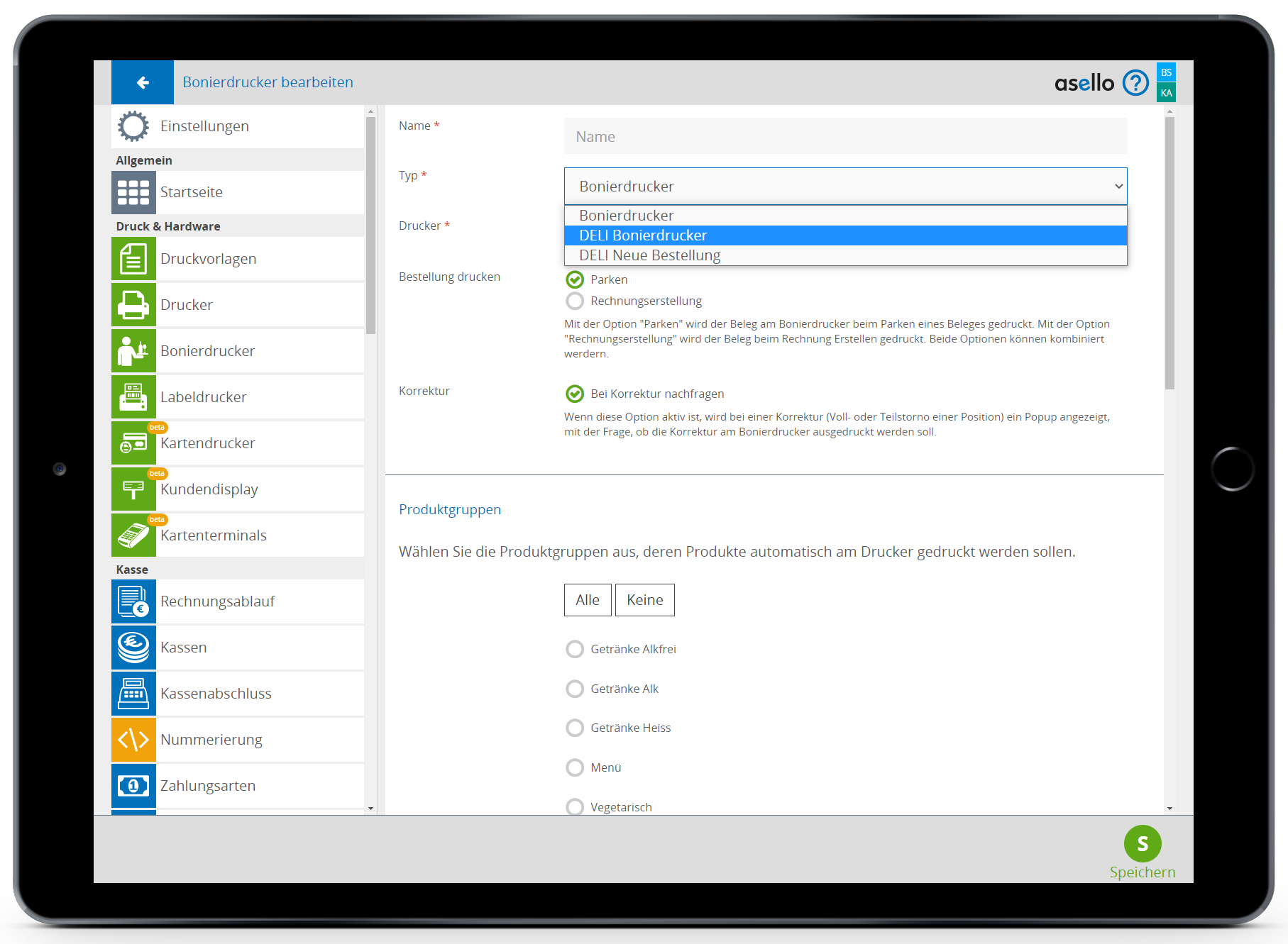 Bei den DELI Druckern, wird zwischen zwei unterschieden. Einerseits den "DELI Neue Bestellung", der automatisch jede eingehende Bestellung druckt und andererseits den "DELI Bonierdrucker", welcher grundsätzlich wie der Bonierdrucker angewandt wird.
