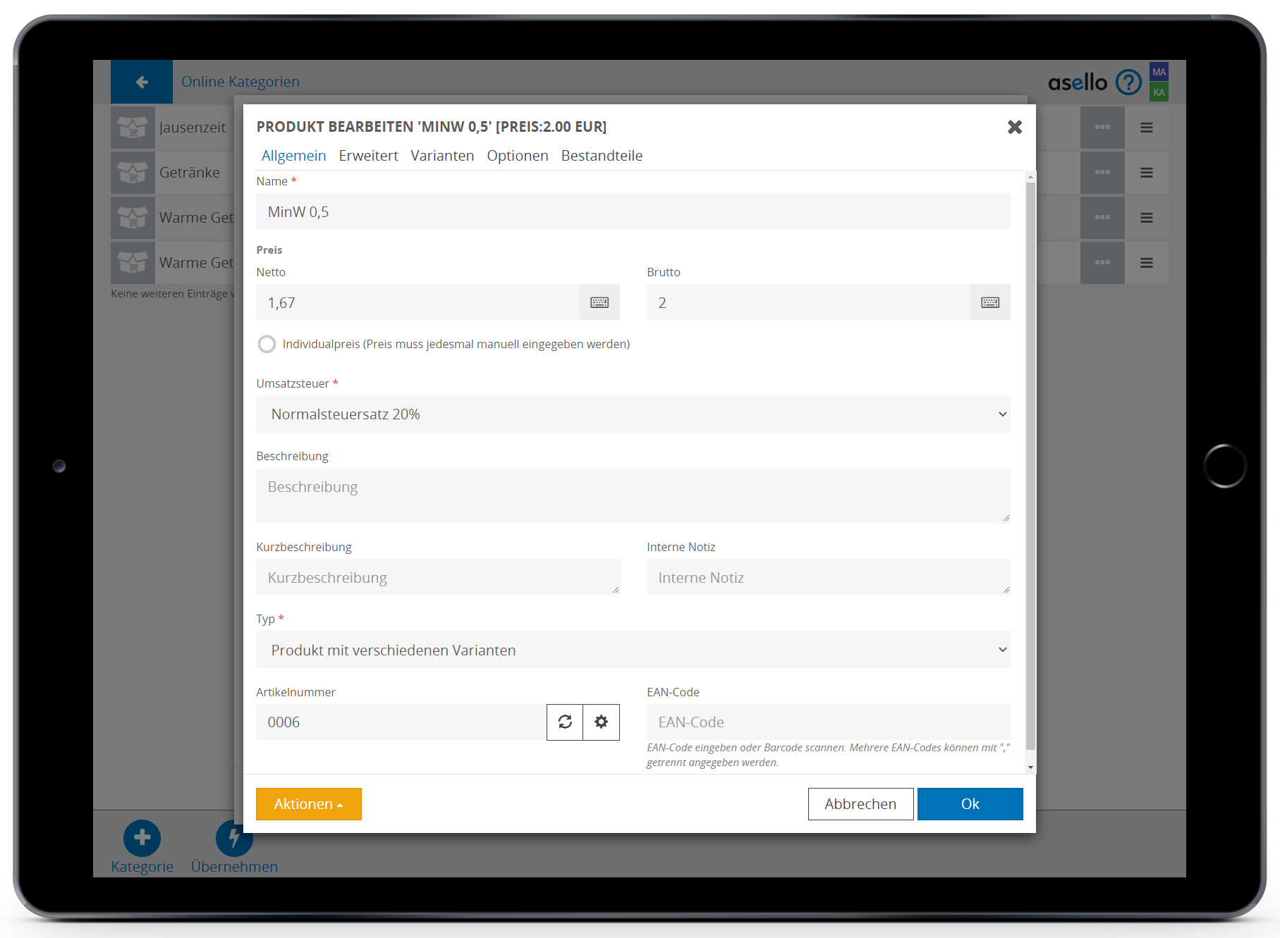 Um mit Ihrem Lieferservice zu starten müssen Sie als erstes in Ihrer Kasse die Produktgruppen und Produkte definieren, die in aselloDELI angezeigt werden sollen.