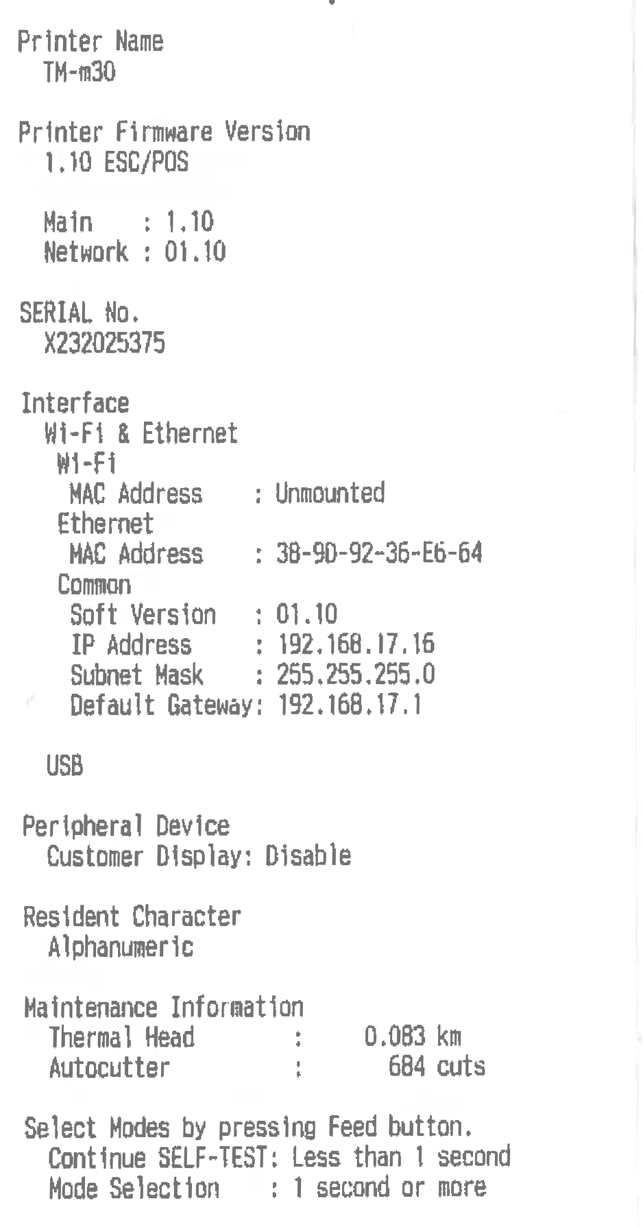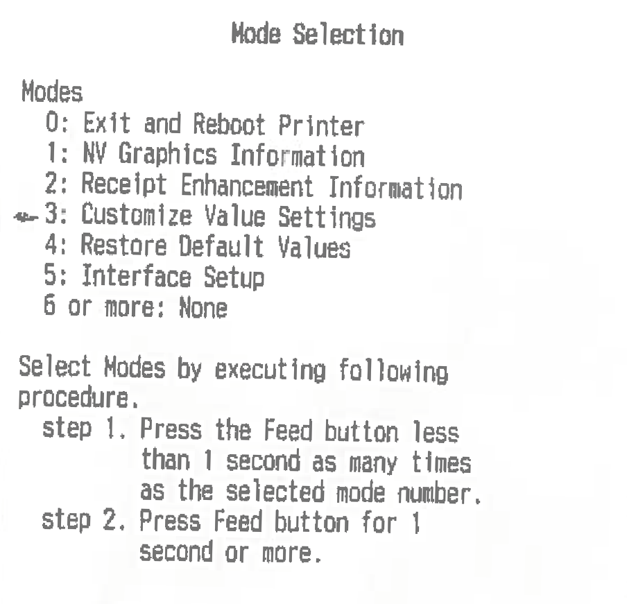 Klicken Sie danach länger als 1 Sekunde auf den Feedbutton (ohne Unterbrechung). Danch druckt der Drucker das Konfigurationsmenü aus.