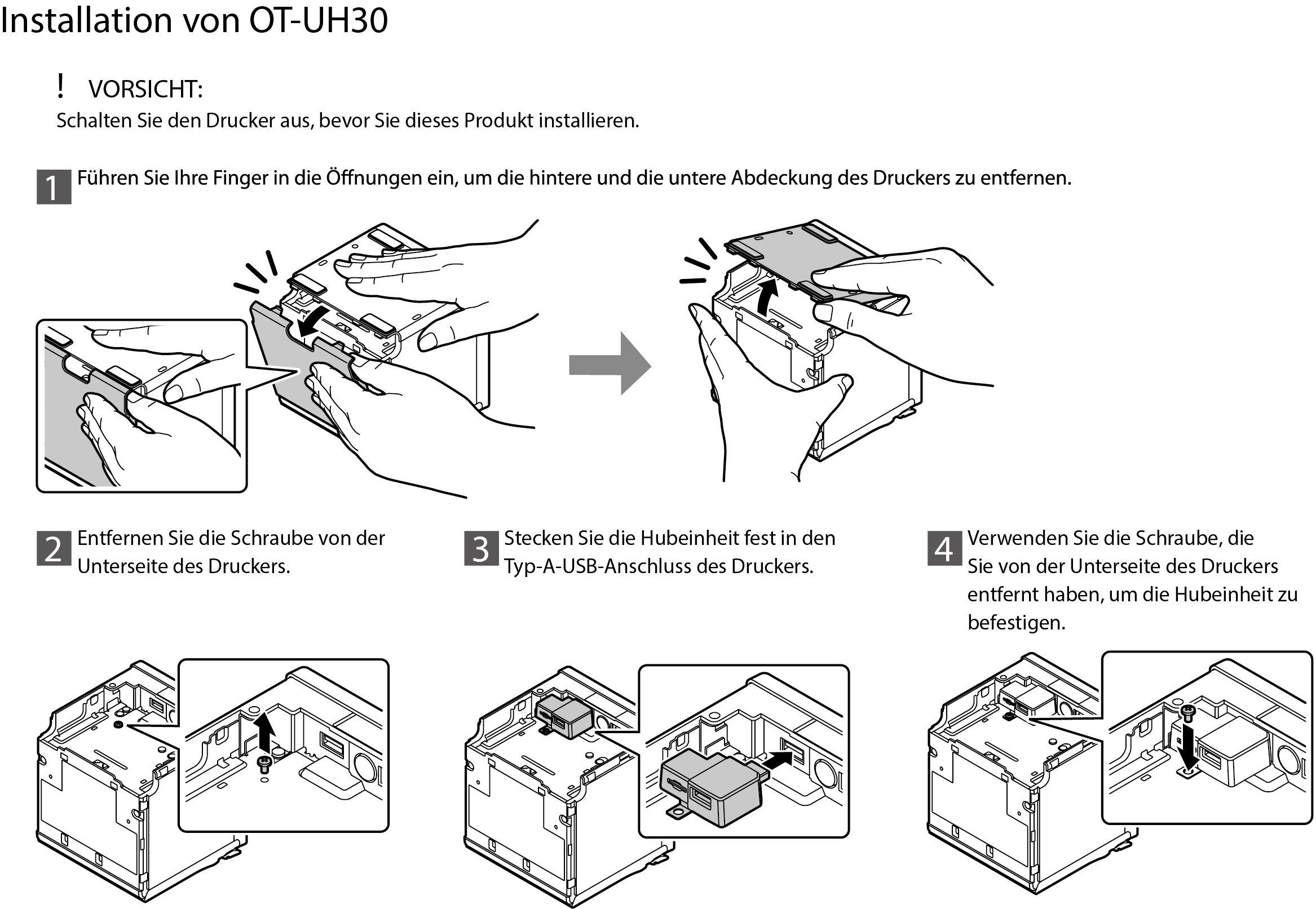 Im zweiten Schritt muss die TSE im Drucker montiert werden. Schalten Sie dazu den Drucker aus und führen Sie folgende Schritte durch: