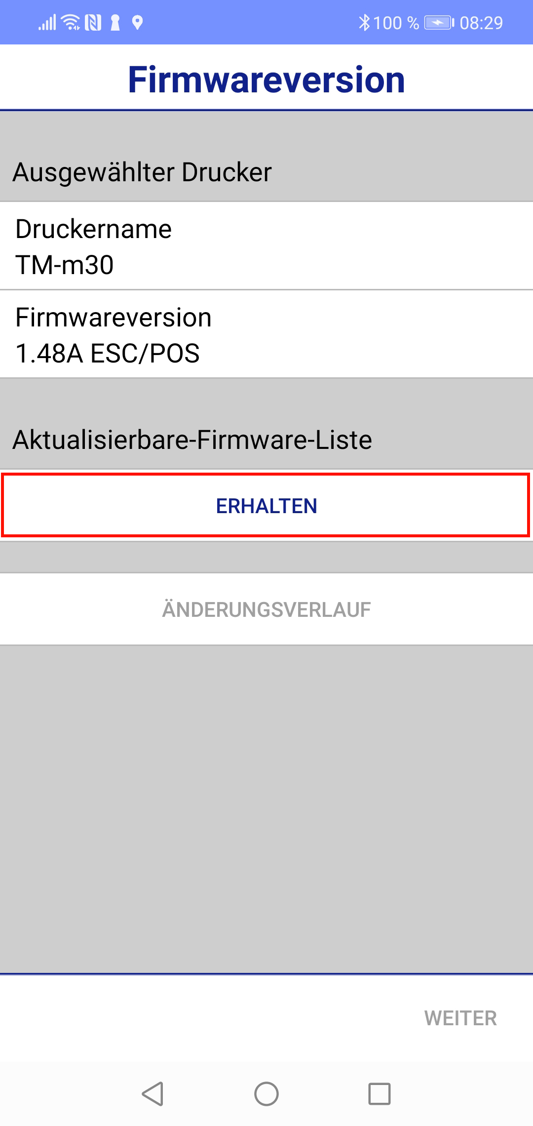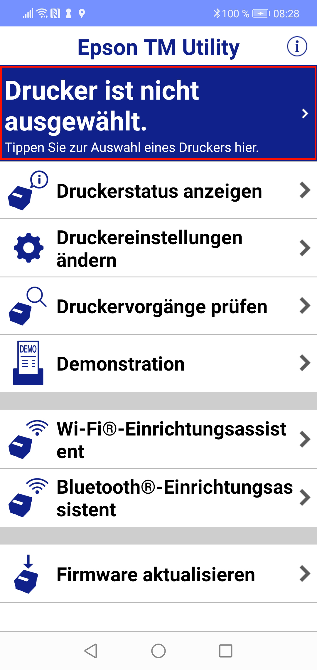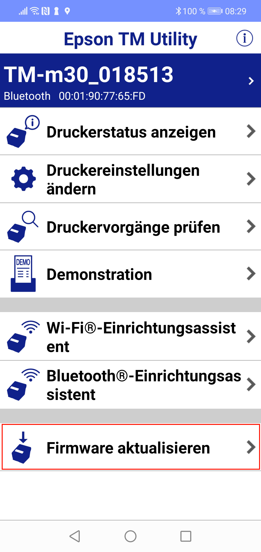 Für das Update, laden Sie die App "Epson TM Utility" aus dem PlayStore oder App Store und starten Sie danach die App.