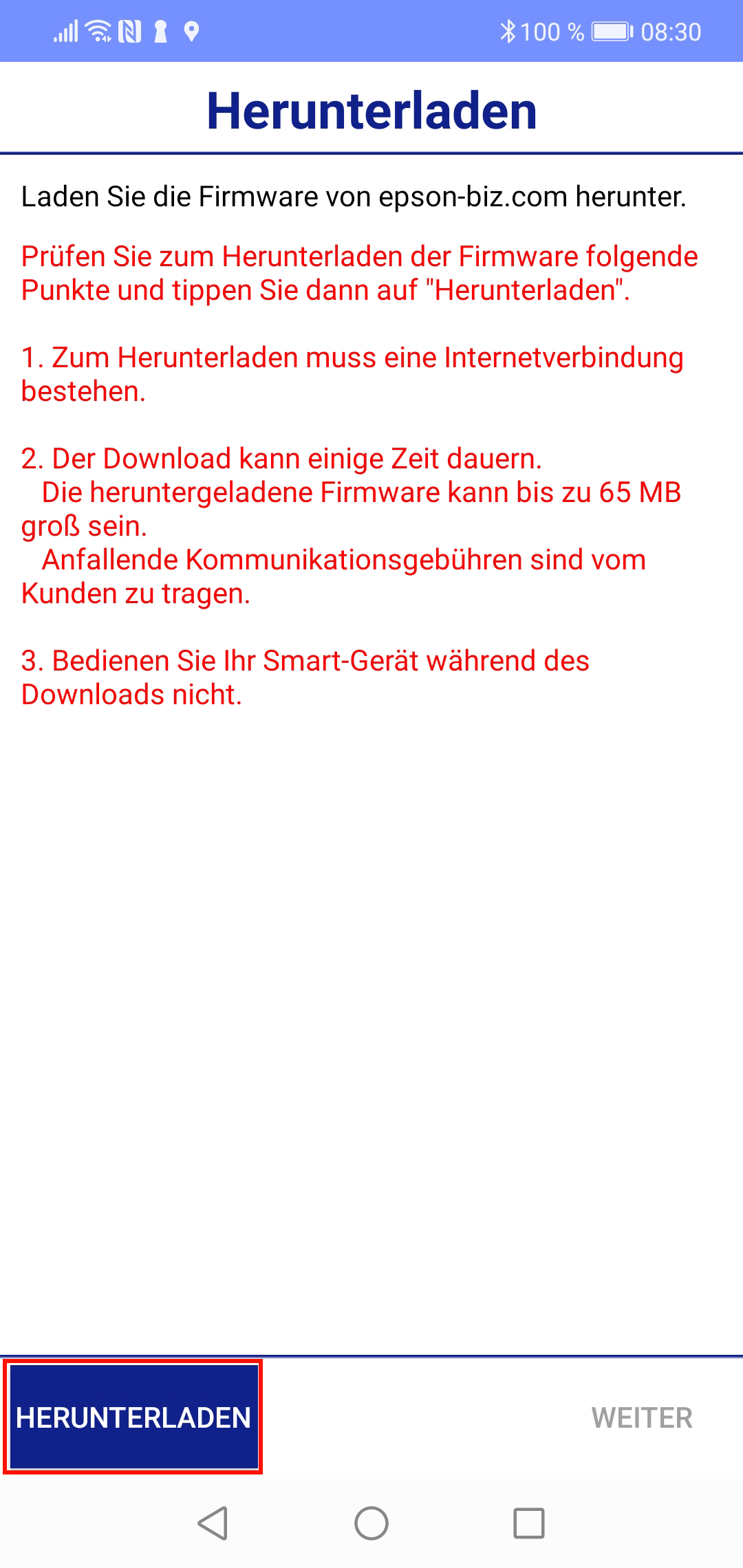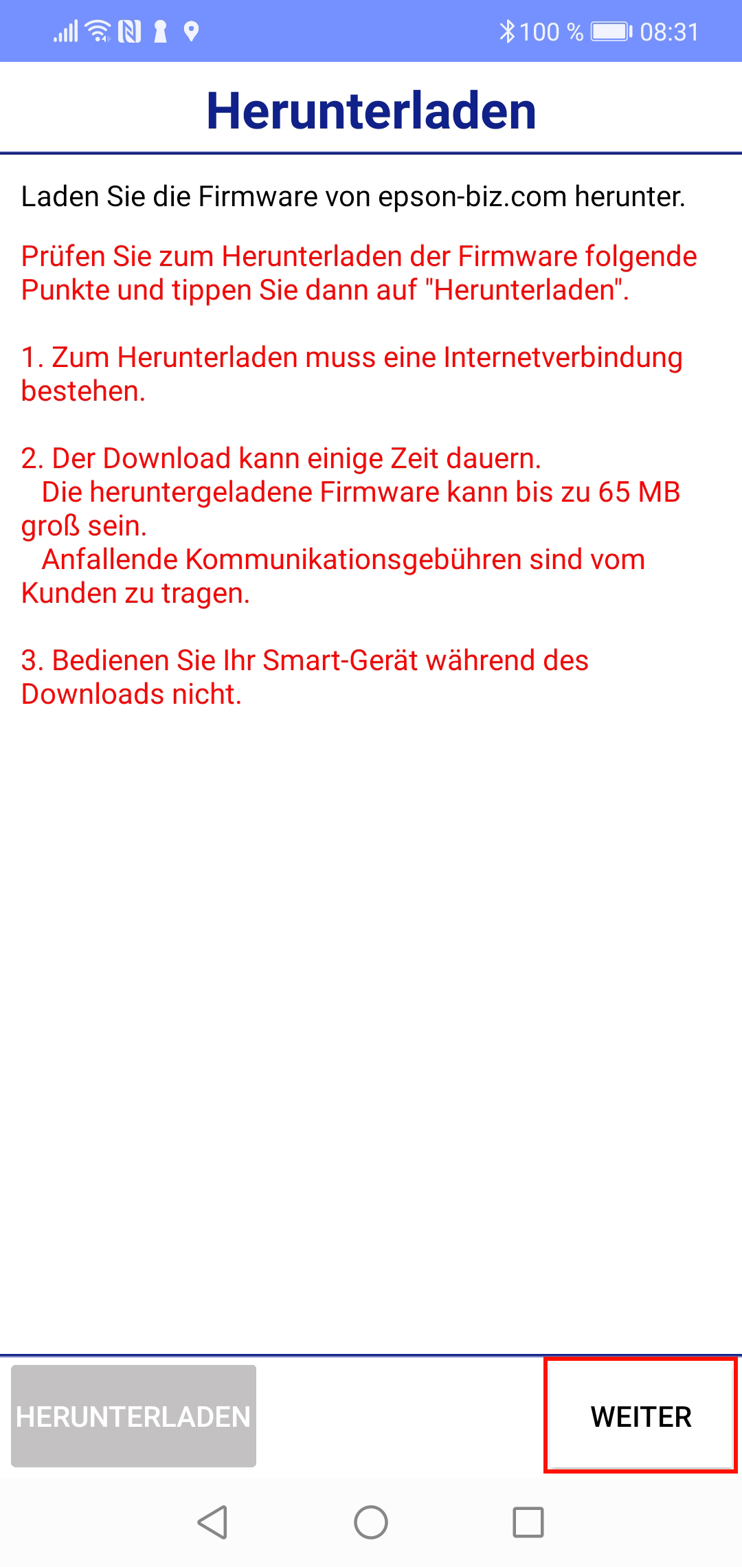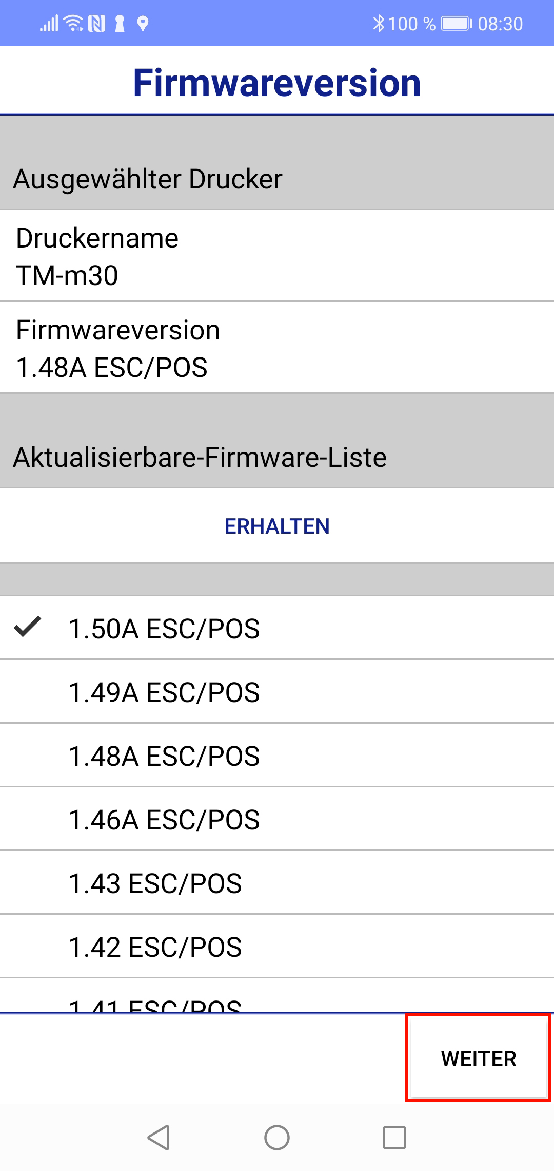 Für das Update, laden Sie die App "Epson TM Utility" aus dem PlayStore oder App Store und starten Sie danach die App.