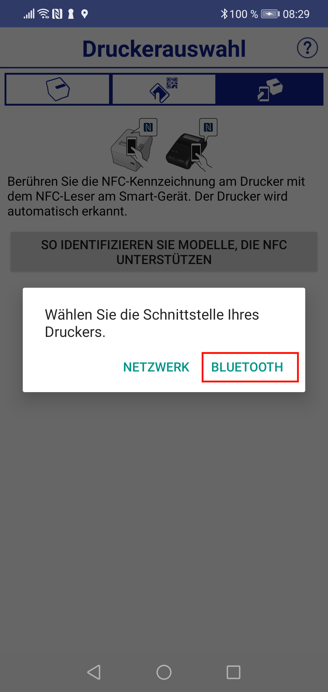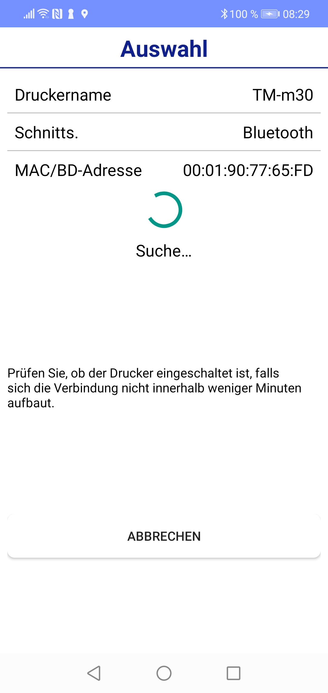 Wählen Sie als Typ: EPSON TSE, als Verbindung Bluetooth und wähöen Sie ihren Drucker aus.