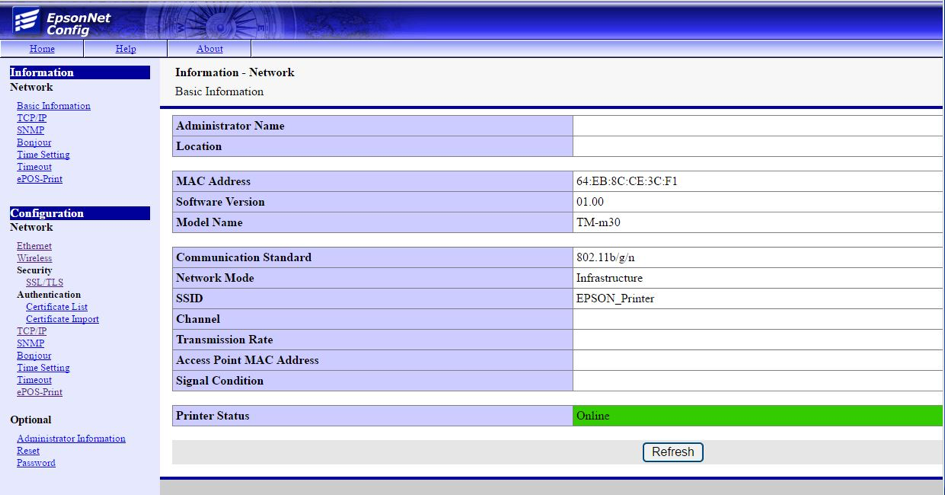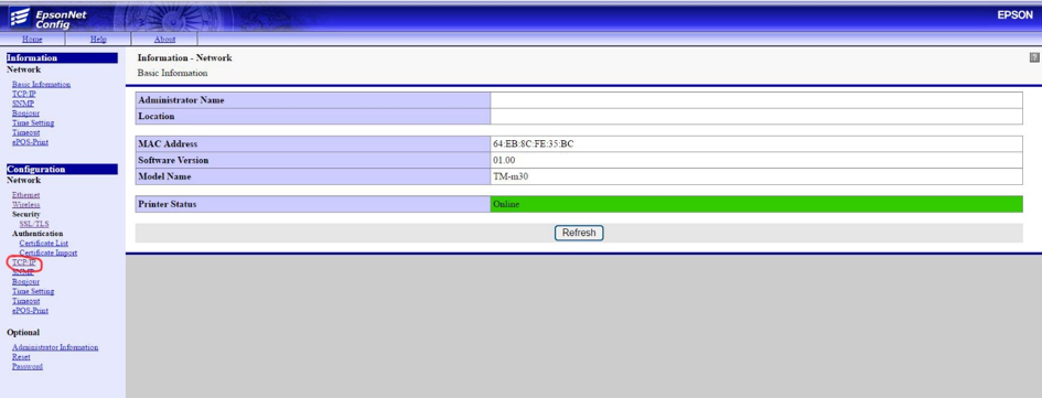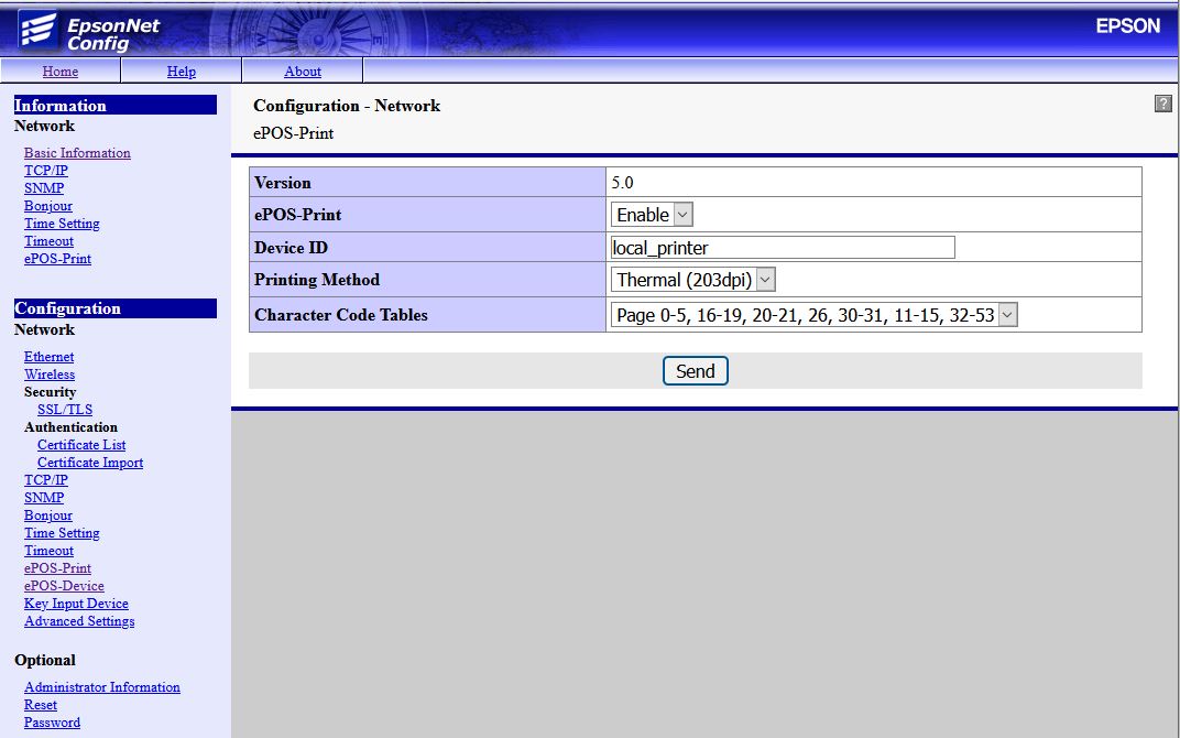 Je nach Modell und Voreinstellung muss die ePOS Schnittstelle am Drucker aktiviert werden. Dazu kann der Menüpunkt ePOS-Print verwendet werden. Die Einstellung ePOS-Print muss auf Enable gesetzt werden.