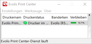 Im Evolis Print Center sollte der eingeschaltene Drucker nun angezeigt werden.