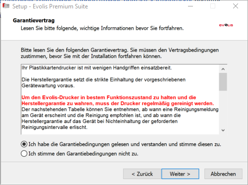 Nachdem Sie auf "Ich habe die Garantierbedingungen gelesenund verstanden und stimme diesen zu." geklickt haben, klicken Sie auf Weiter.