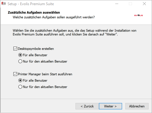 Wählen Sie die gewünschten Optionen und klicken auf Weiter.