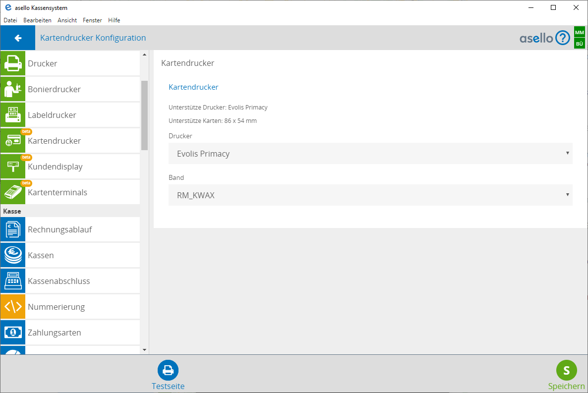 Der Kartendrucker evolis Primacy wird momentan von der asello Windows unterstützt.