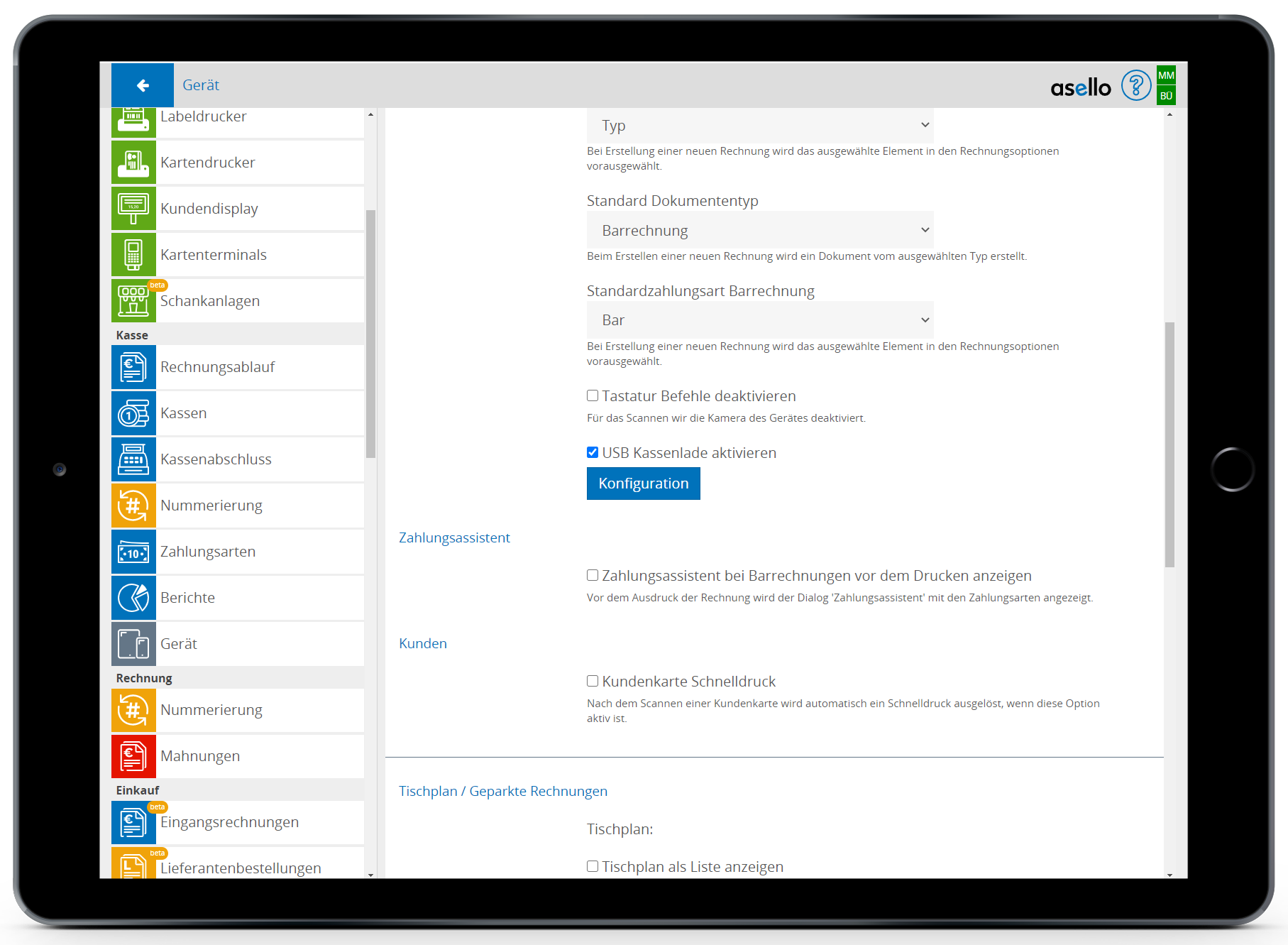 Die Konfiguration kann in der asello Windows Anwendung unter Einstellungen > Gerät durchgeführt werden.