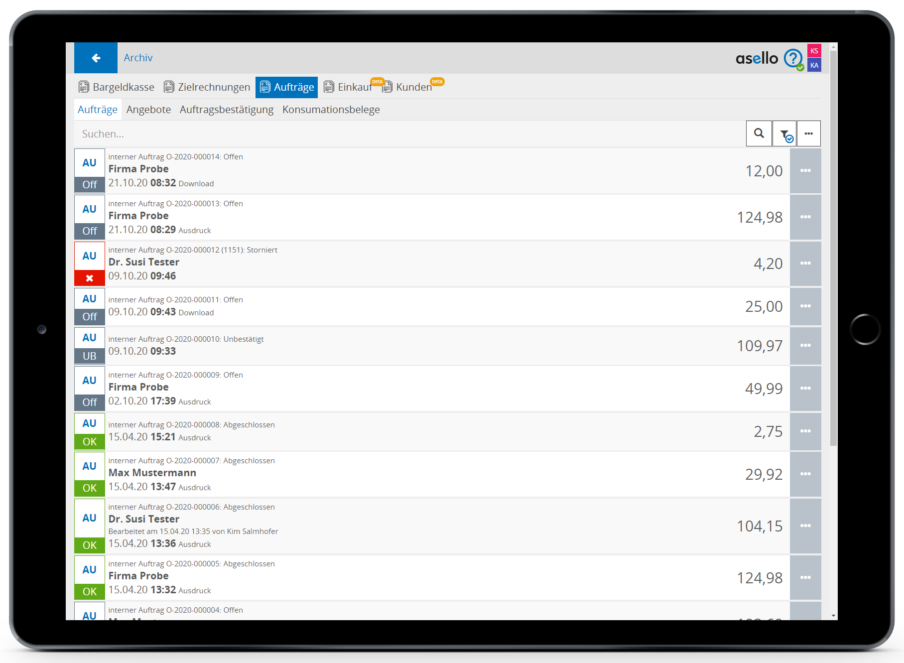 Mehr zu Aufträgen in aselloDELI erfahren Sie im Leitfaden aselloDELI / Bestellabwicklung.