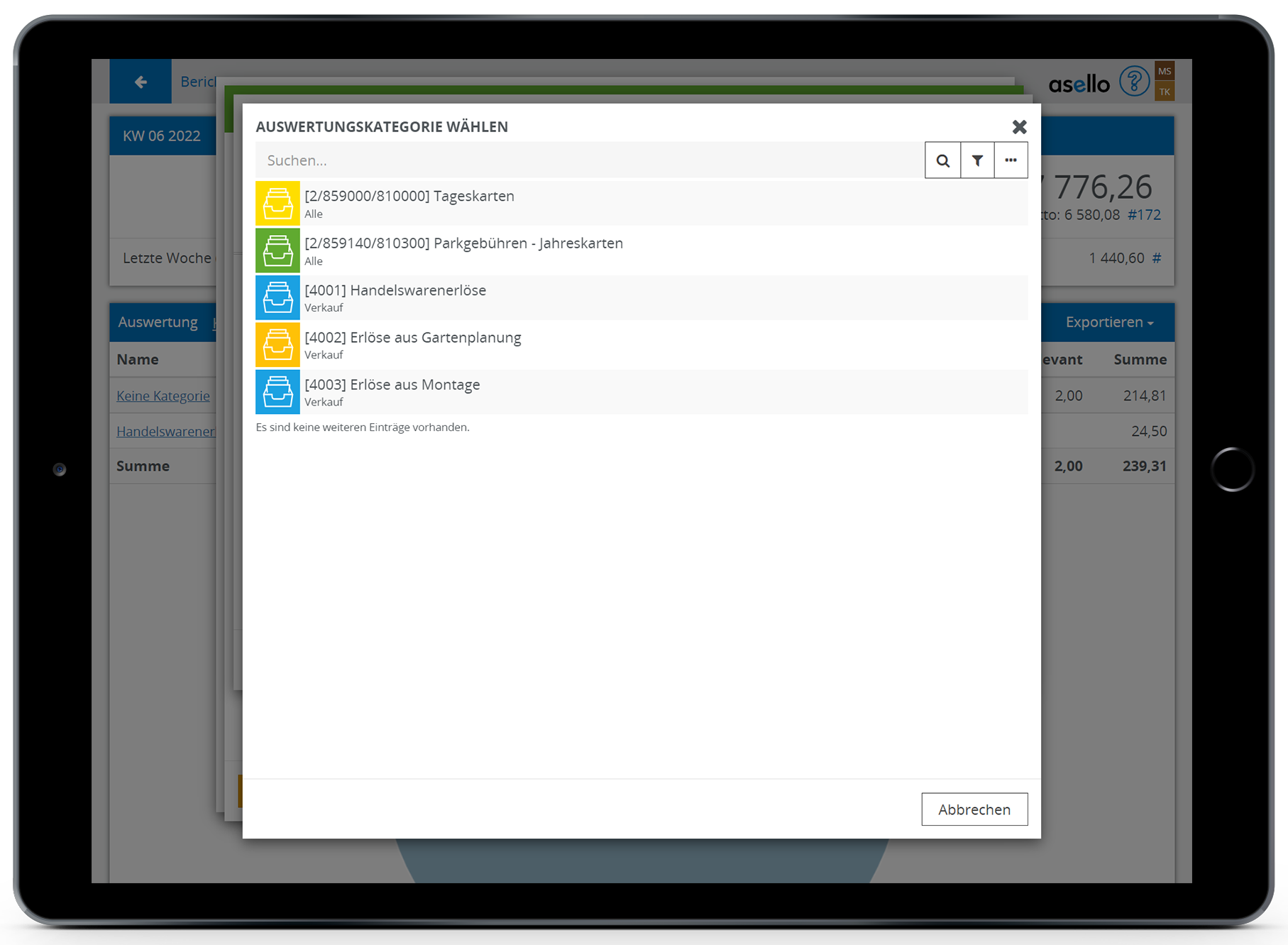 Klicken sie bei dem Feld unter "Auswertungskategorie" auf die drei Punkte um eine bereits erstellte Auswertungskategorie auszuwählen, oder auf das Plus um eine neue Auswertungskategorie zu erstellen und diese zuzuordnen.