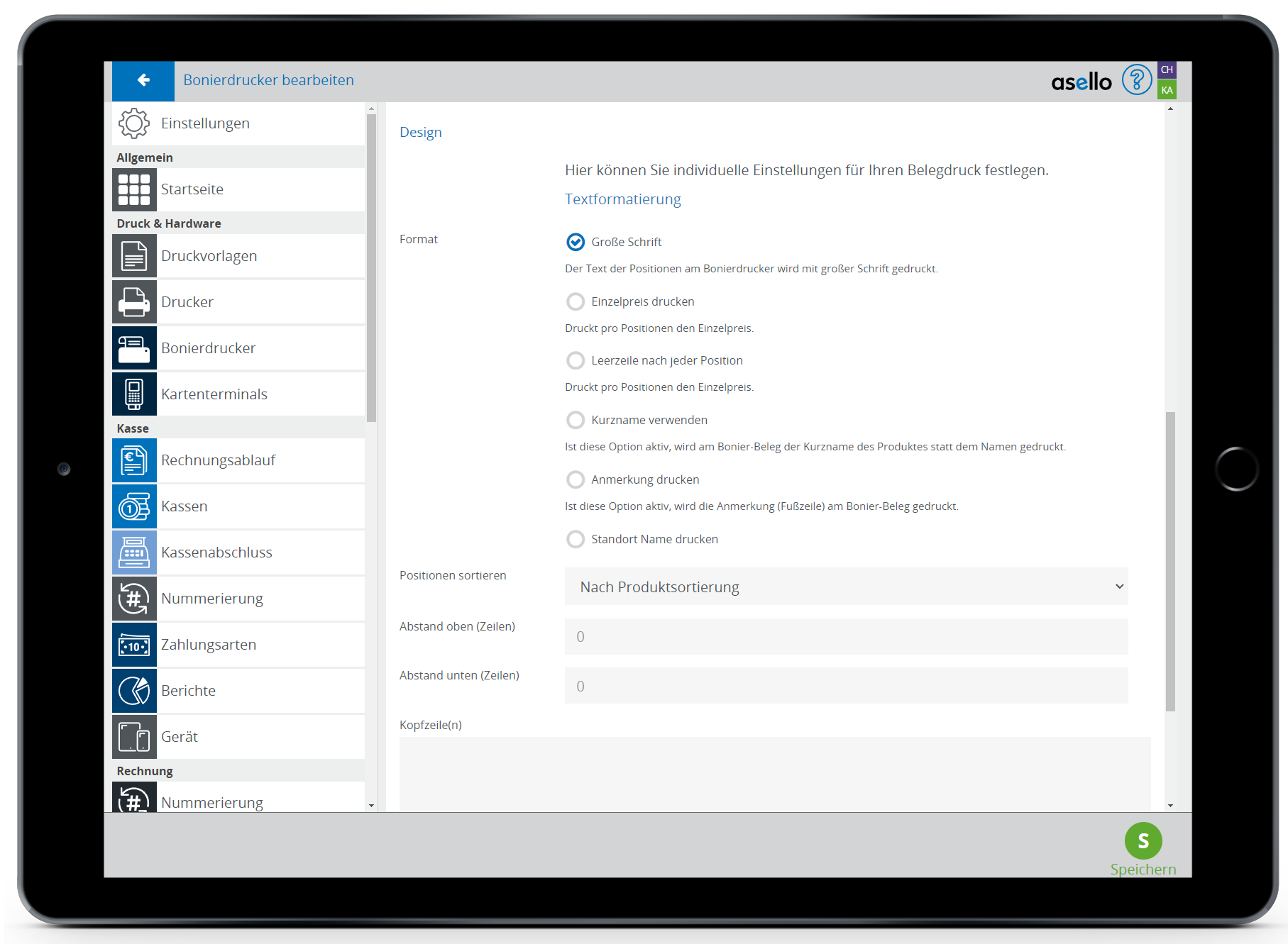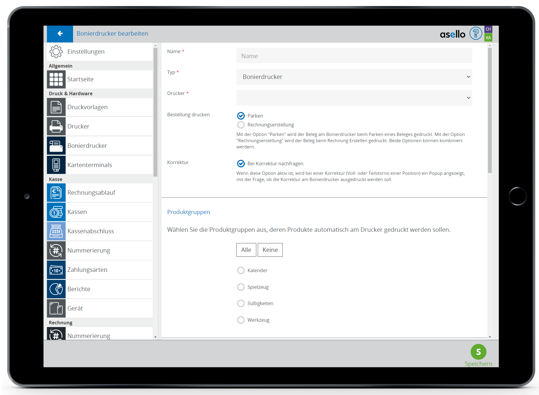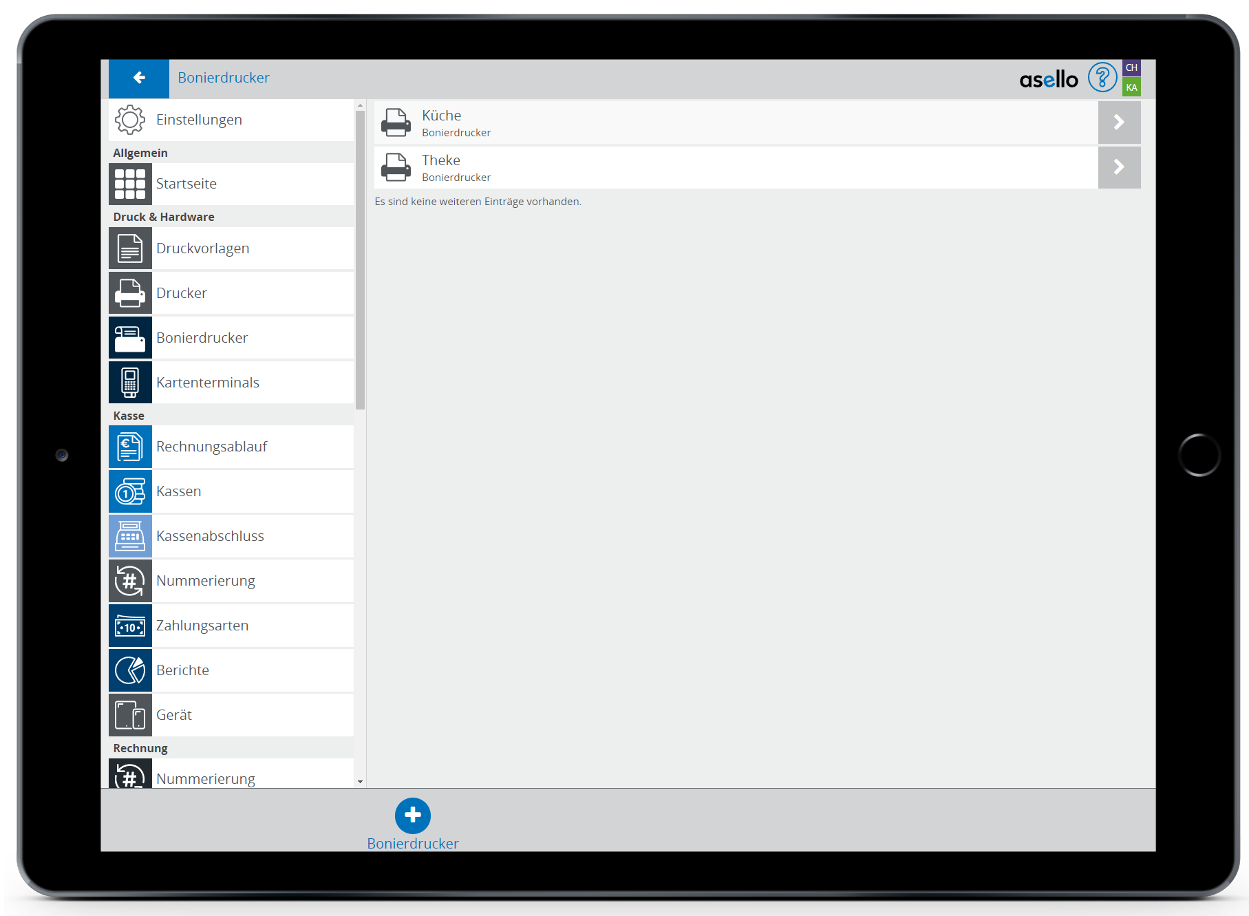In diesem Leitfaden erfahren Sie, wie Sie in asello einen Bonierdrucker hinzufügen und konfigurieren können.