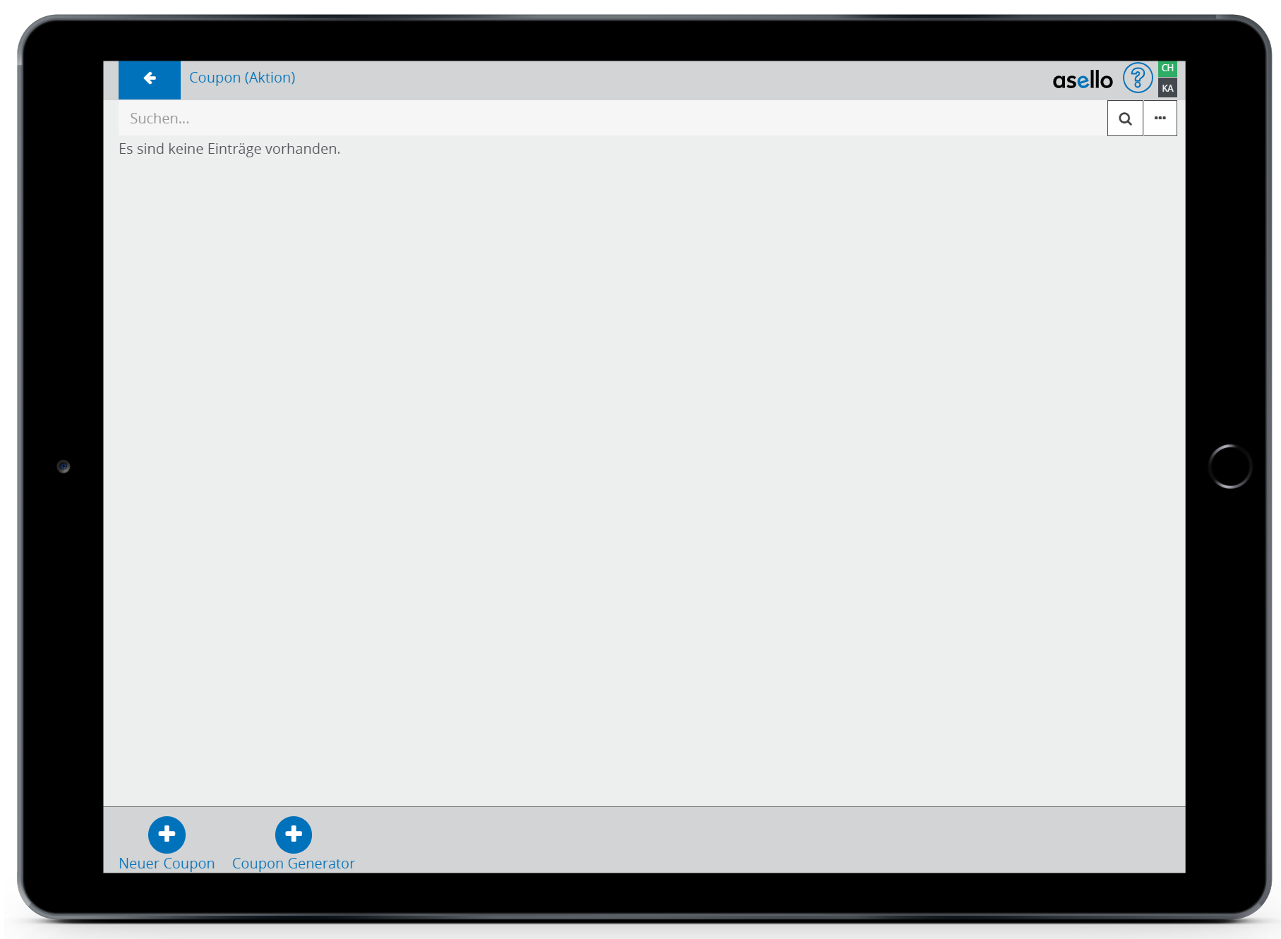 Damit Sie einen Coupon erstellen können, klicken Sie auf die Zeile der gewünschten Coupon kategorie und anschließend auf den blauen Button Plus "Coupon generieren".