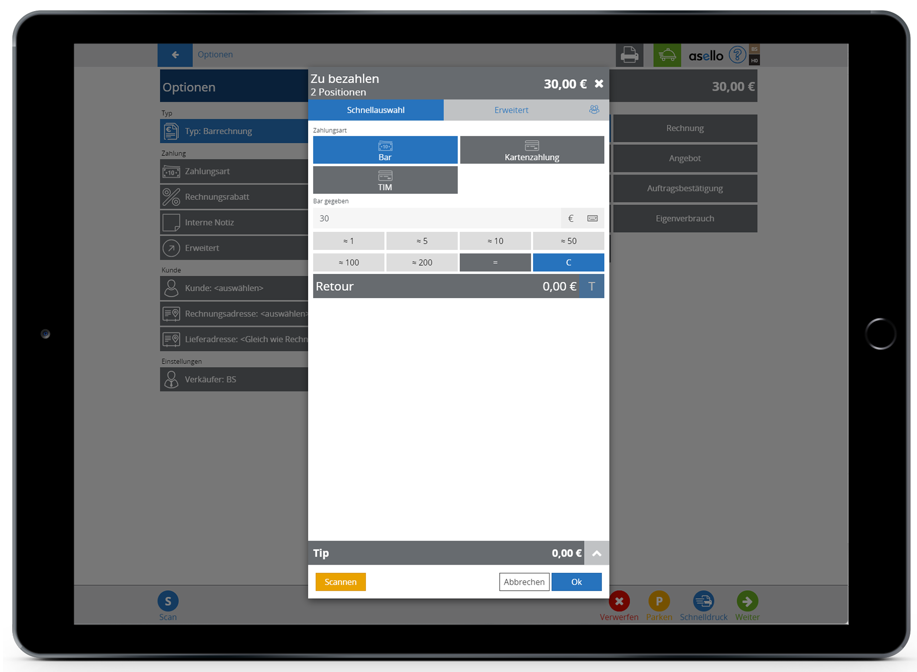 Der Zahlungsassistent öffnet sich. Klicken Sie unter dem Gesamtbetrag auf den zweiten Reiter "Erweitert".