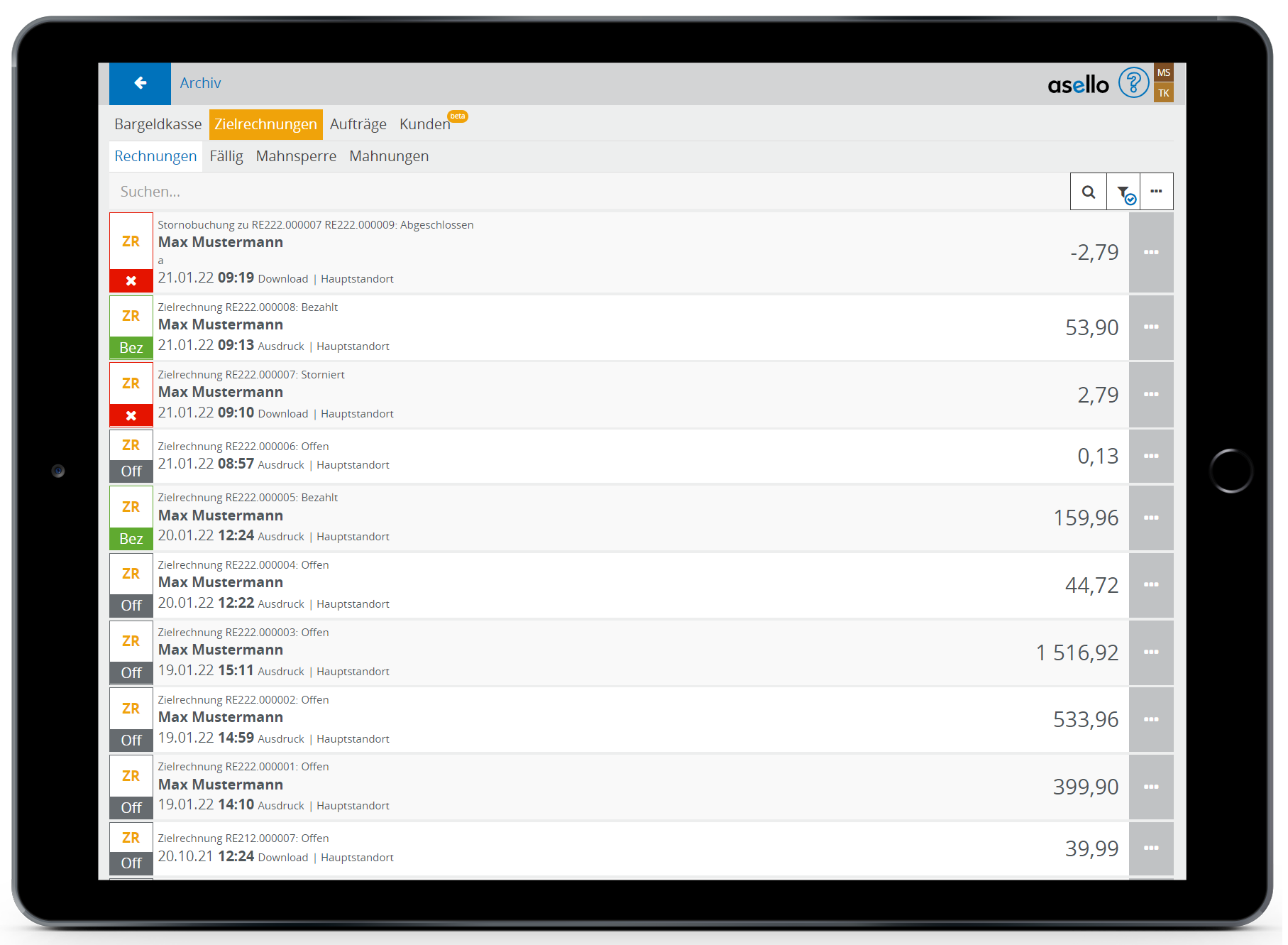 Um eine Zahlung zu erfassen, muss der Status der Zielrechnung "Offen" sein.