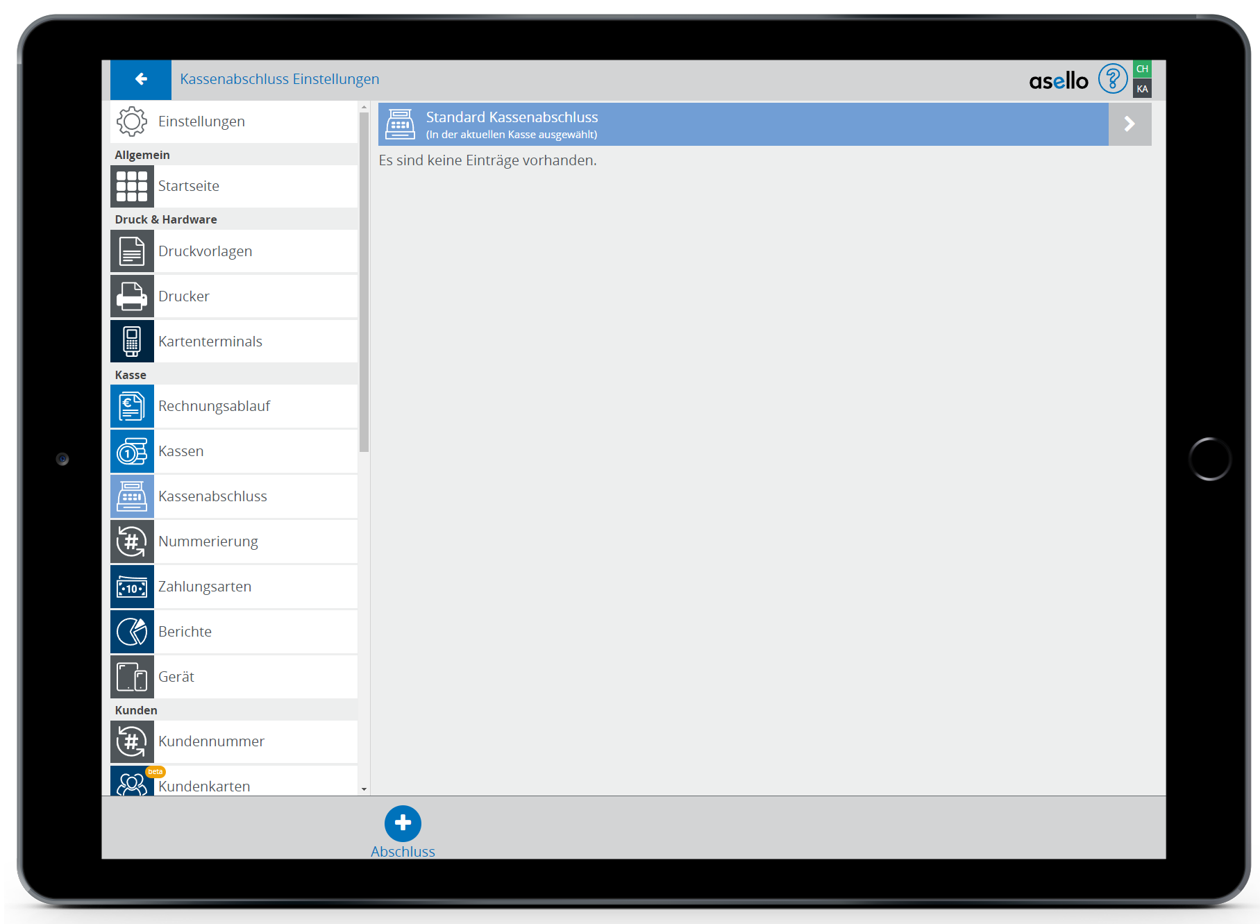 In diesem Leitfaden erfahren, wie Sie in asello Ihren Kassenabschluss konfigurieren können. Am Ende eines jeden Tages oder am Ende einer Schicht sollte für jede Kasse ein Kassenabschluss erstellt werden.