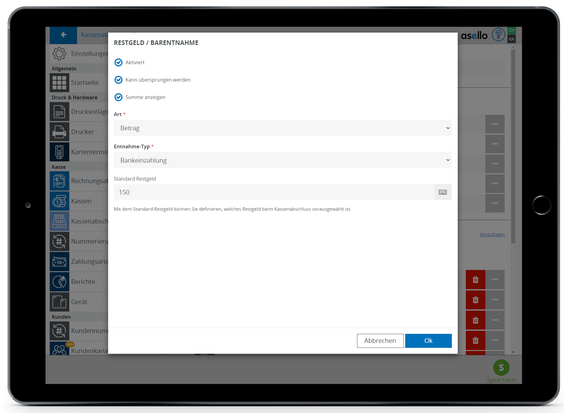 Kassenabschluss konfigurieren