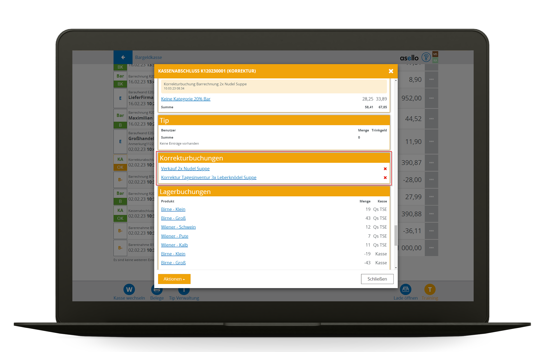 Kassenabschluss Korrektur