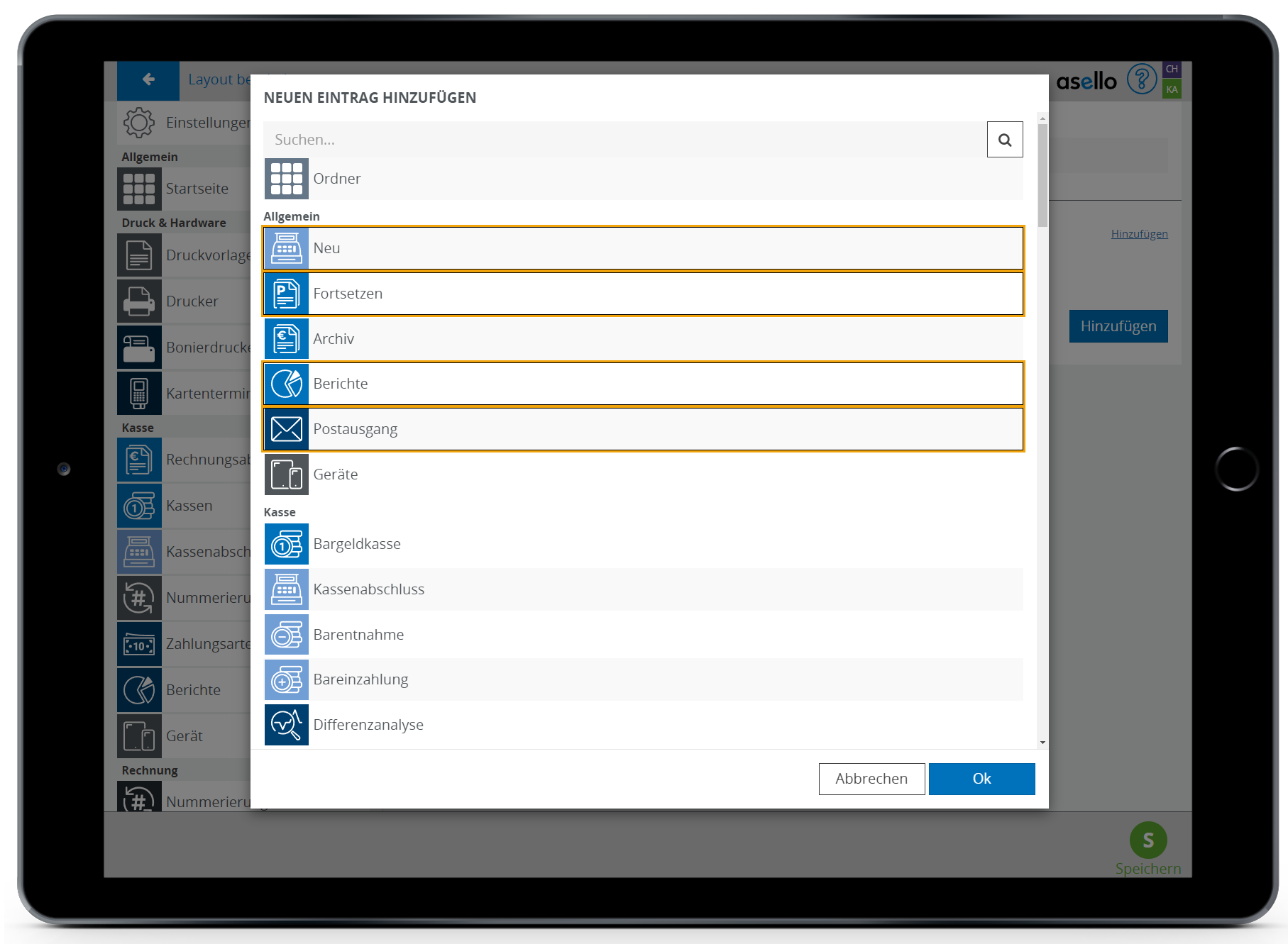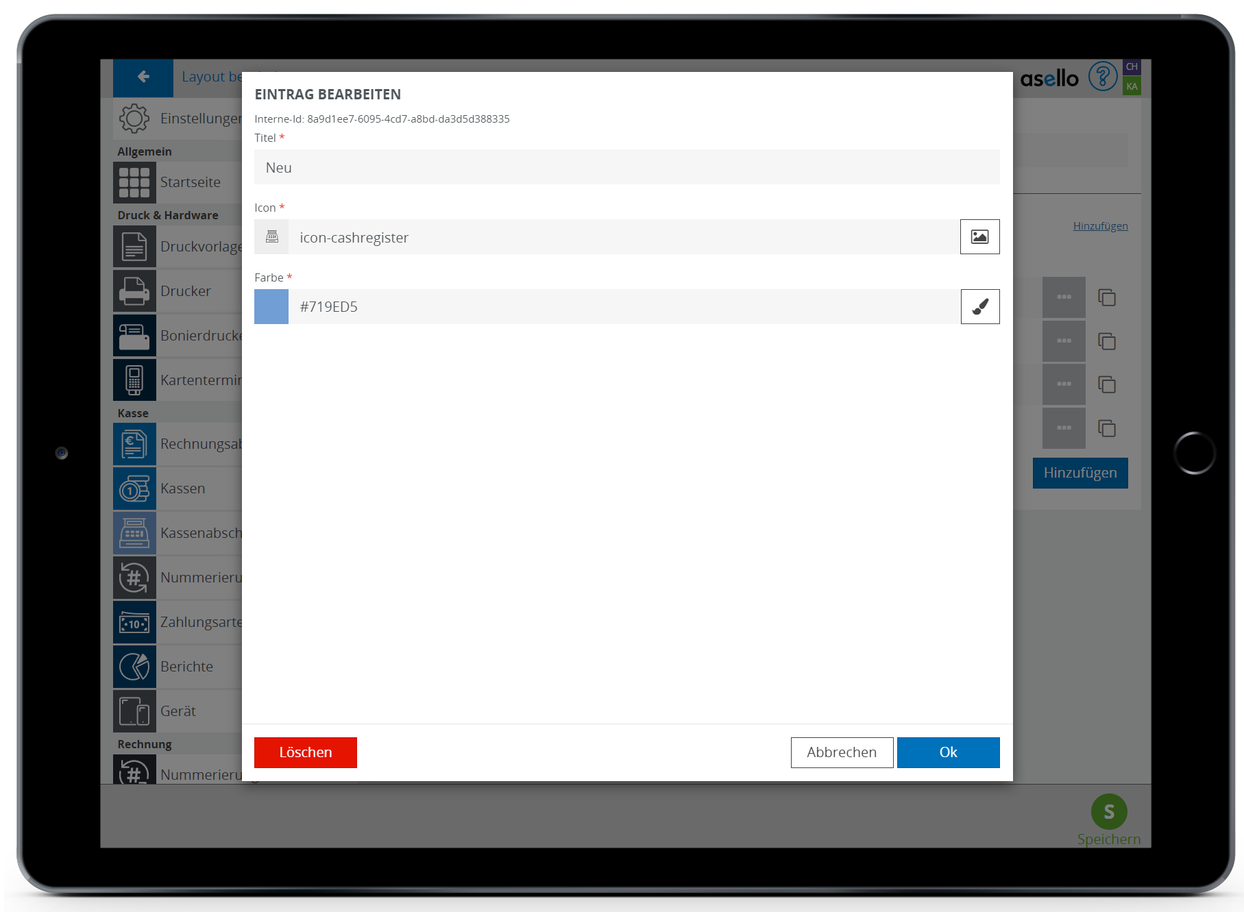 Icon | In der Zeile Icon können Sie ein beliebiges Icon festlegen. Um das Icon zu ändern, klicken Sie am Ende der Zeile auf das Bildicon. Im nun erscheinenden Pop-Up-Fenster können Sie aus allen in asello vorhandenen Icons wählen. |