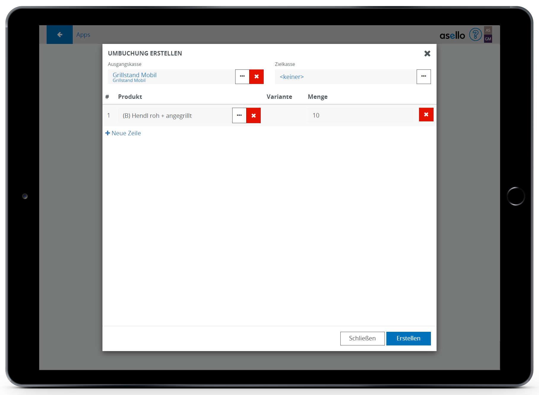 Die Funktion Lager Umbuchung kann als Kachel auf die Startseite gegeben werden.