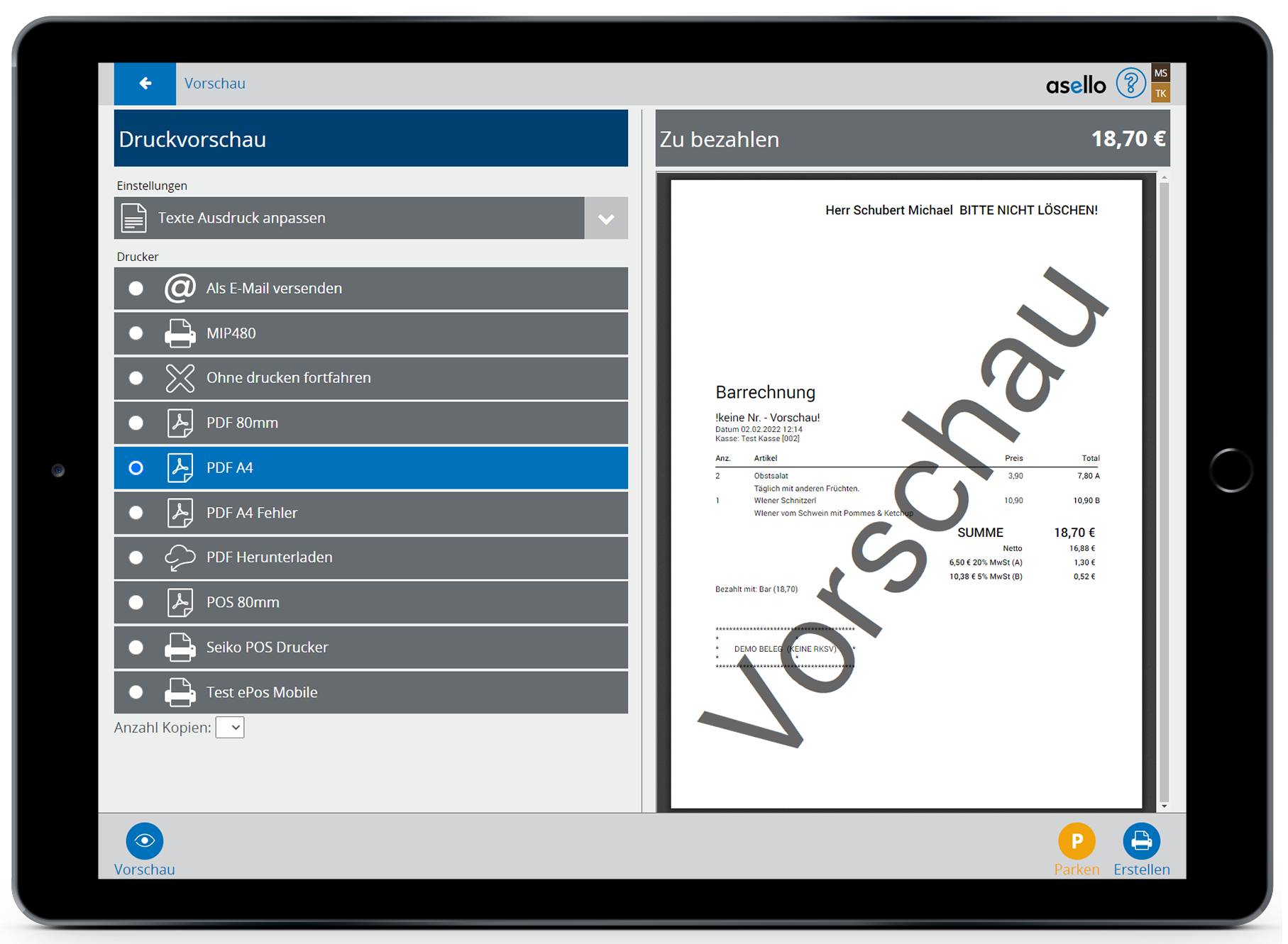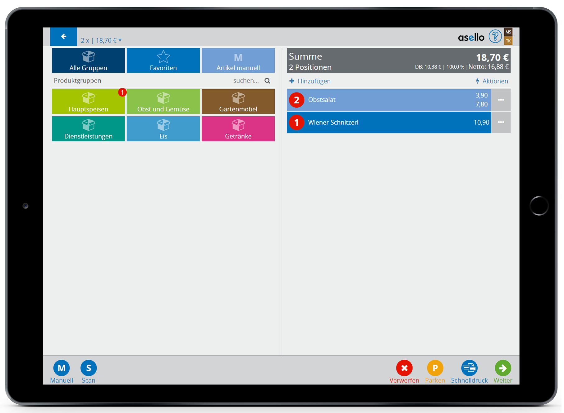 Abschließend können Sie die Rechnung wie gewohnt fertigstellen. Der manuelle Artikel wird auf der Rechnung gleich angezeigt, wie die anderen Positionen.