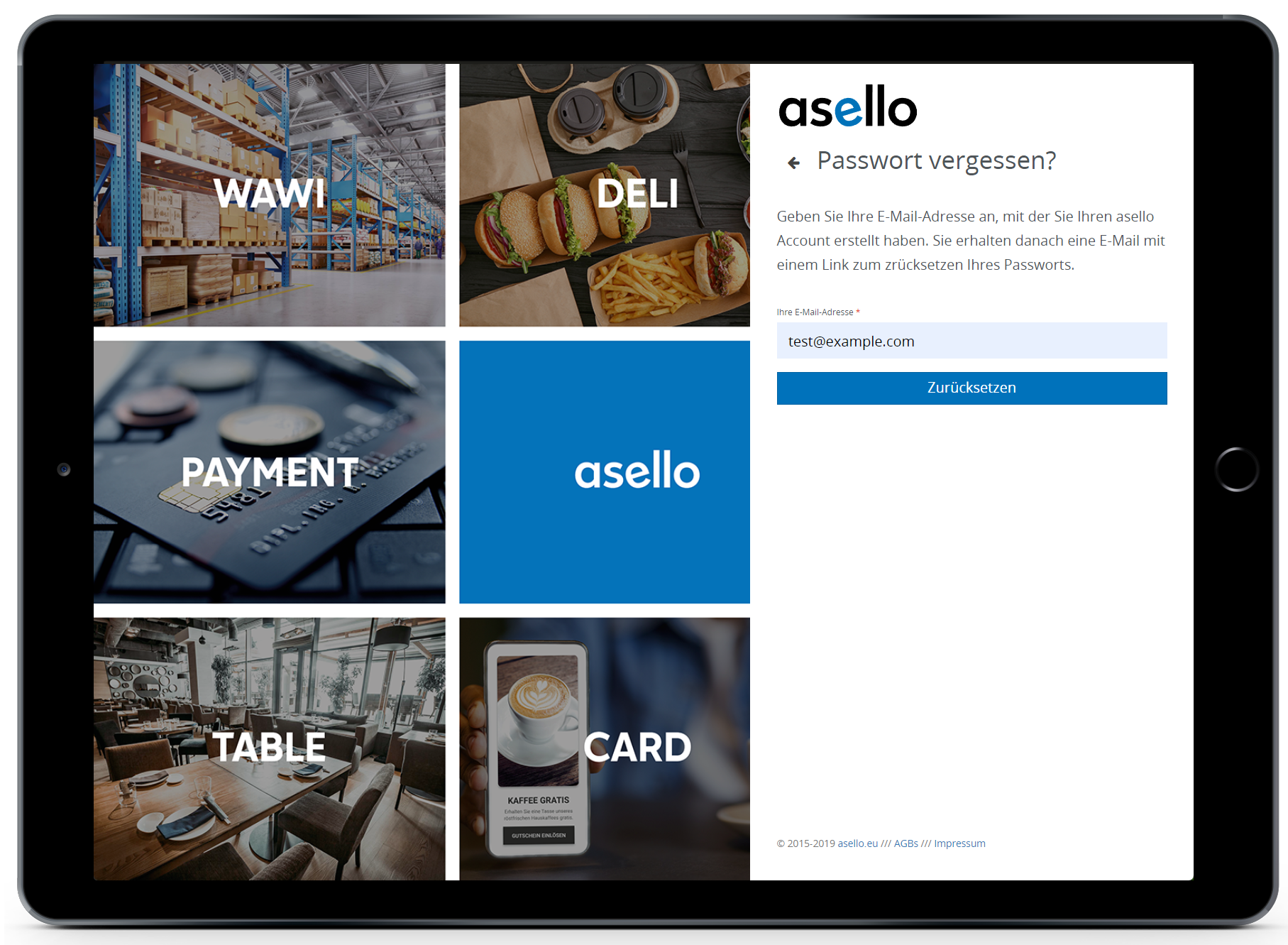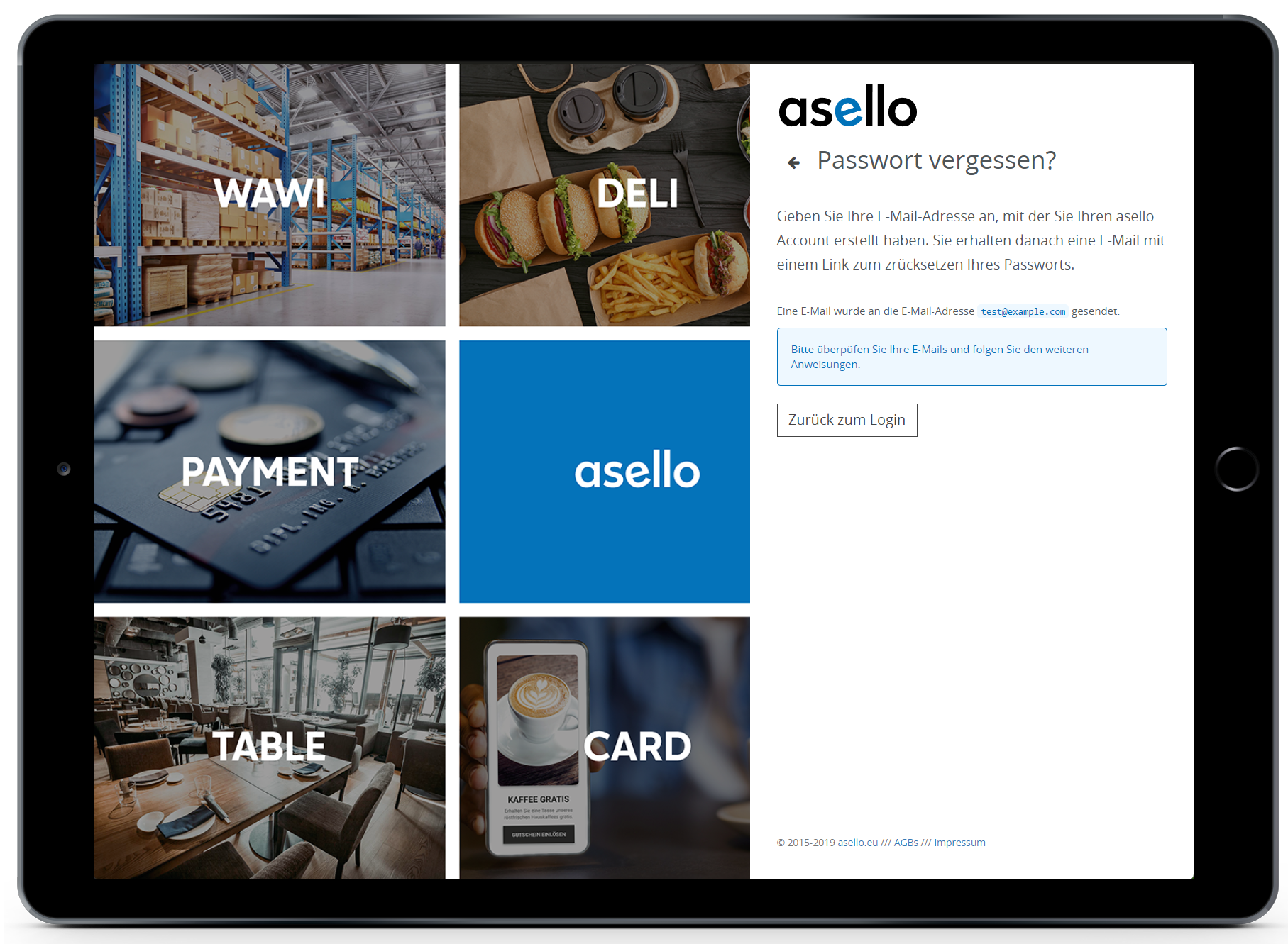 Wenn Ihnen das Passwort nicht mehr bekannt ist, können Sie dieses einfach über die asello App oder die asello Web-Oberfläche (https://kasse.asello.eu/) zurücksetzen.