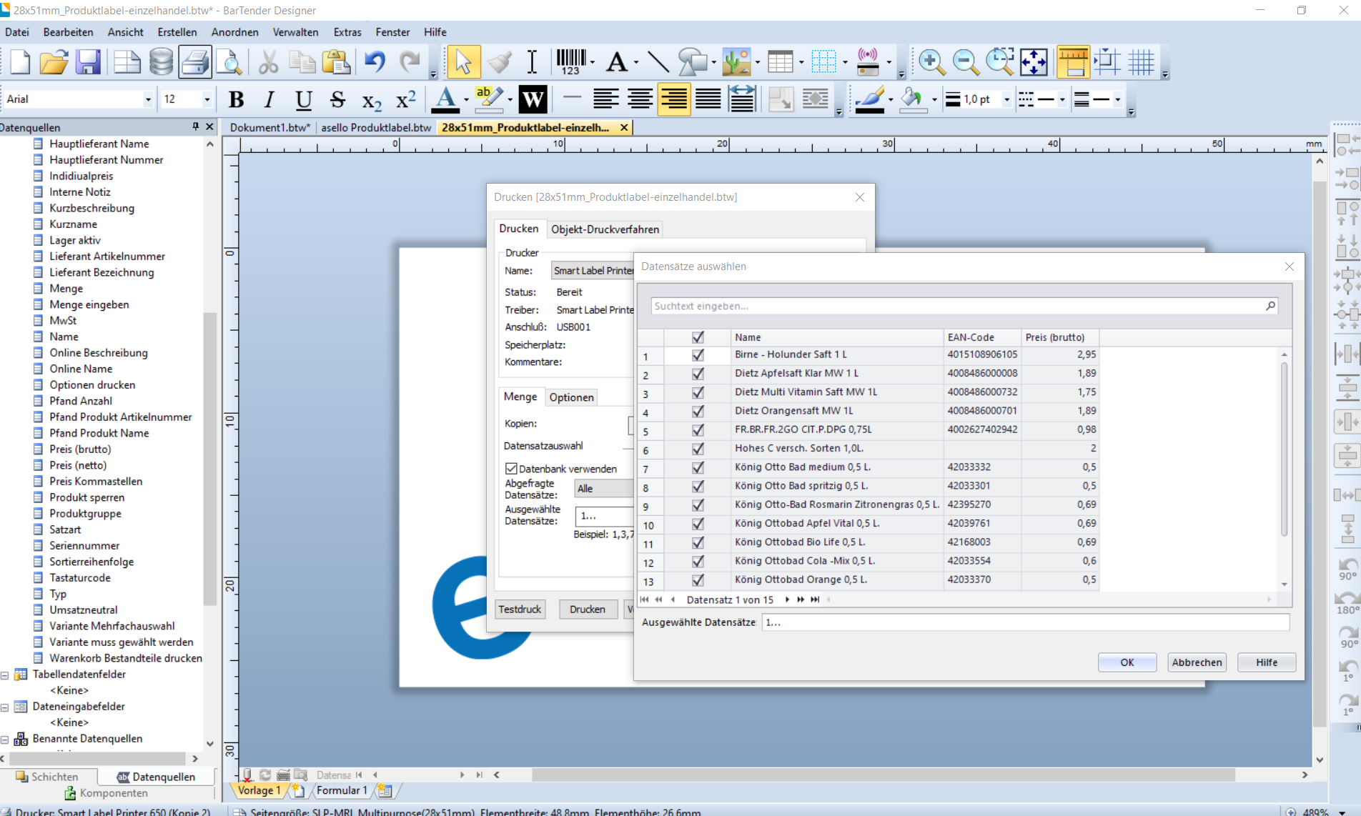 Mit dem Befehl Drucken, werden alle Datensätze als Druckauftrag an den Labeldrucker weitergeleitet.