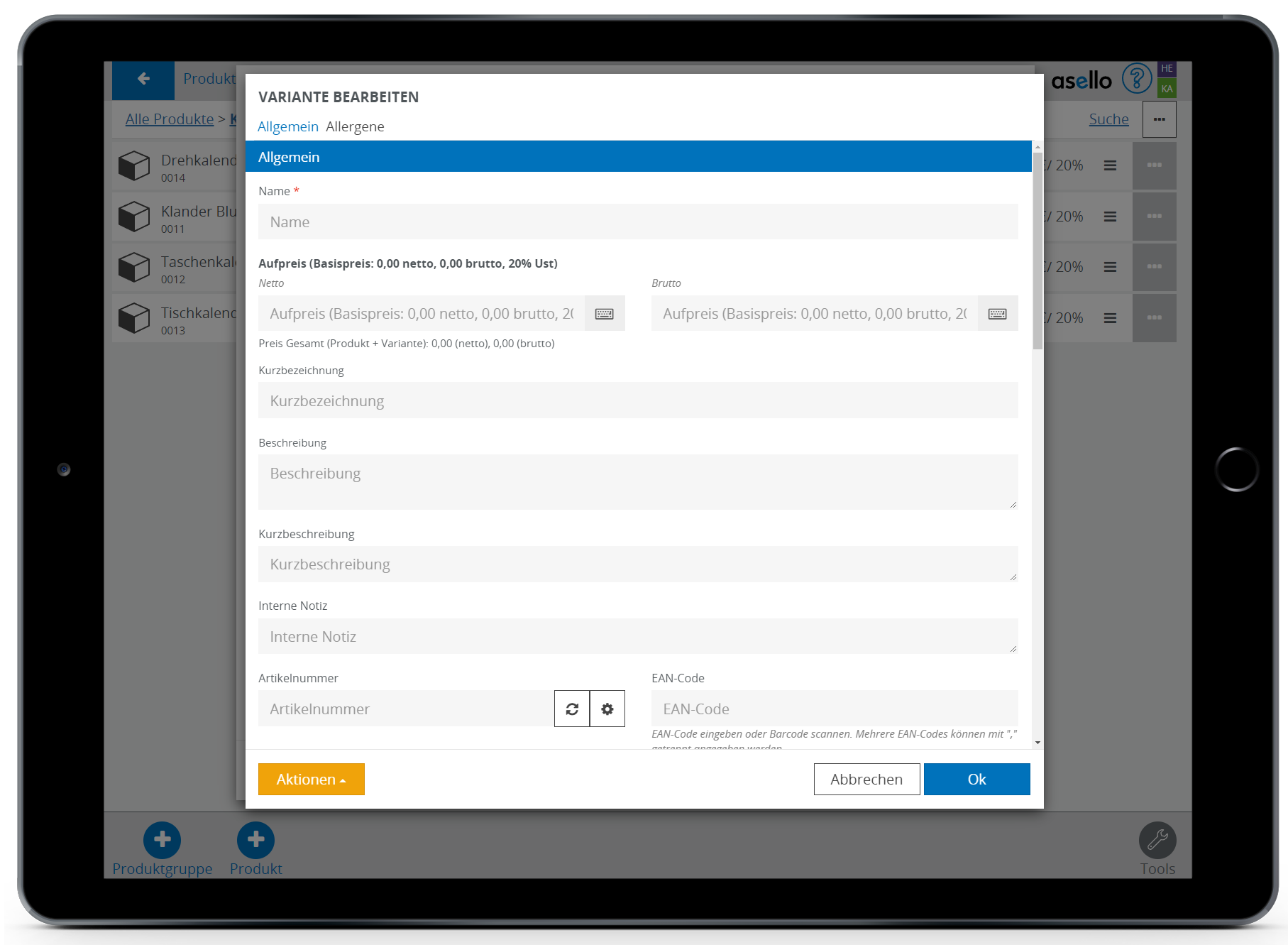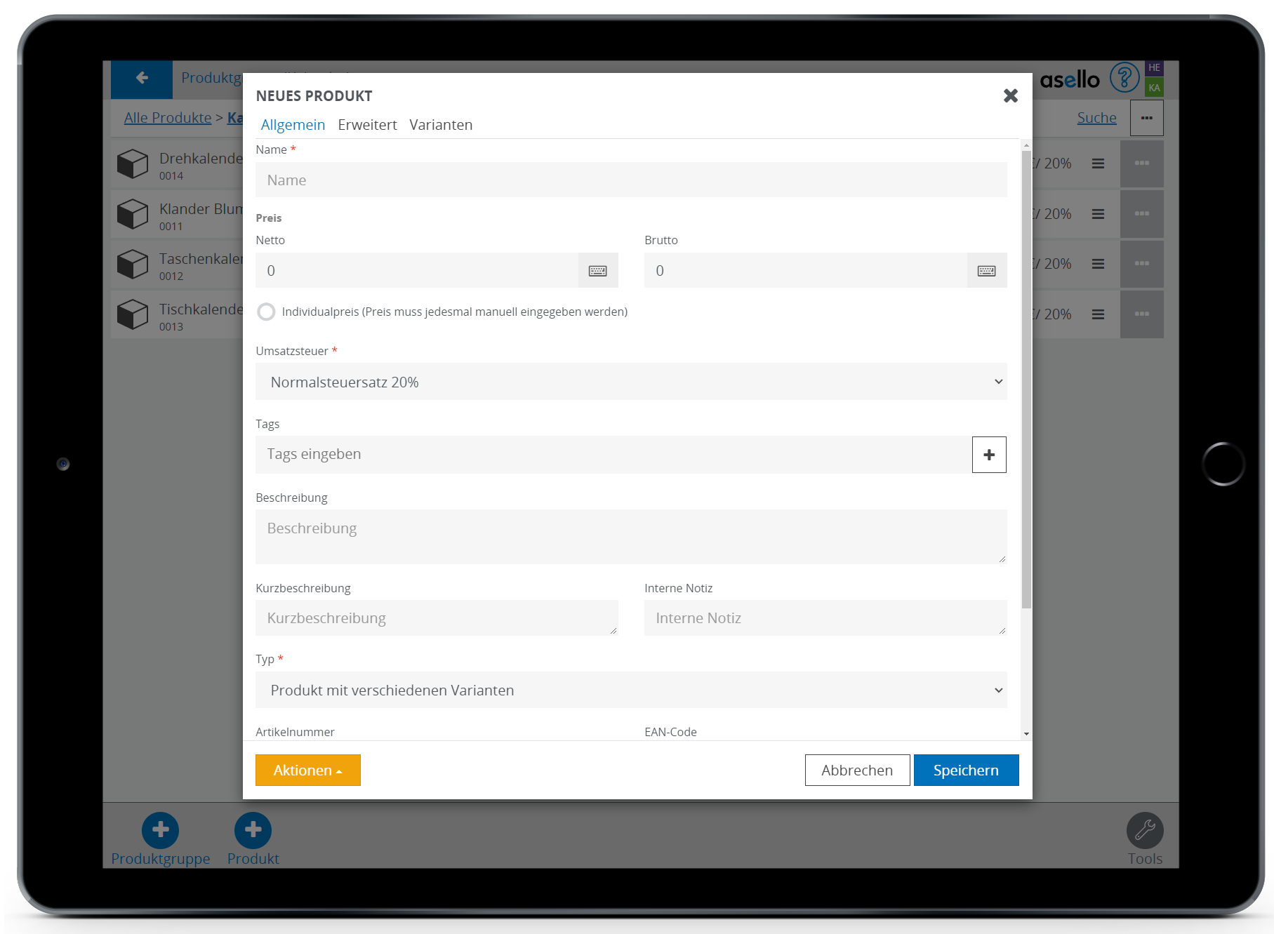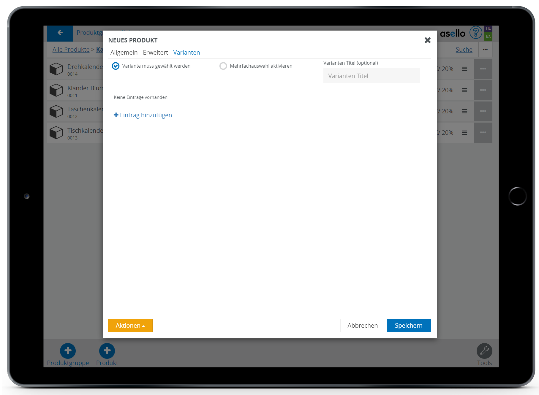 In diesem Leitfaden erfahren Sie, wie Sie in aselloPOS ein Produkt mit Varianten erstellen und verwalten können.