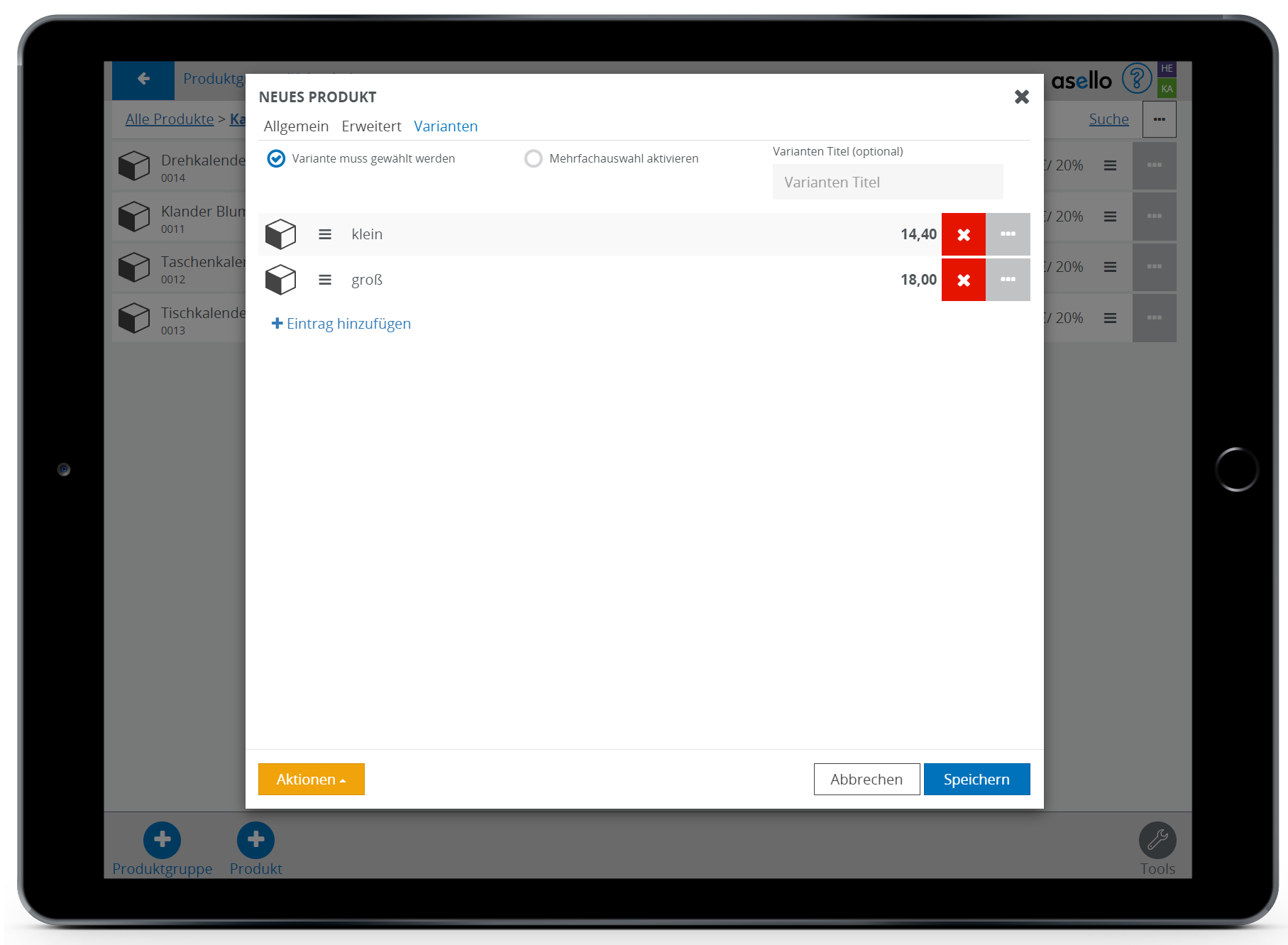 Produkte mit verschieden Varianten in der Kasse