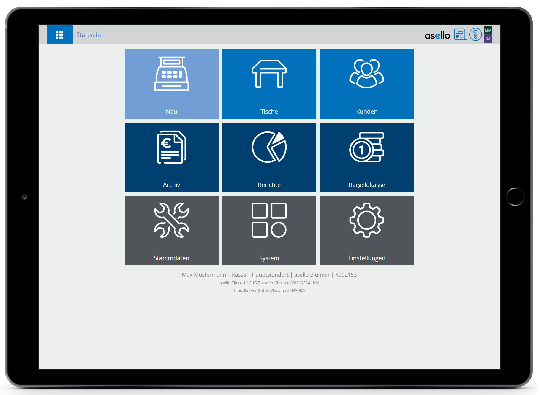 Um eine Rechnung zu erstellen, klicken Sie auf der asello Startseite auf die Kachel „Neu“.