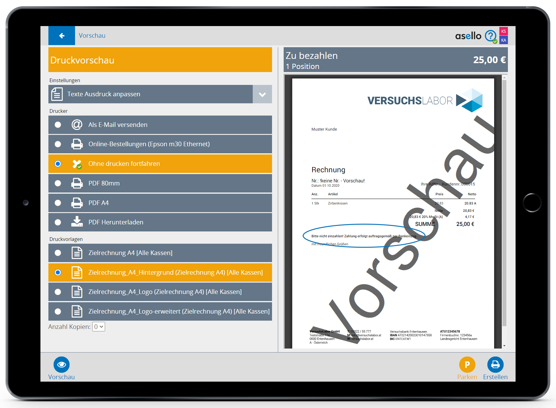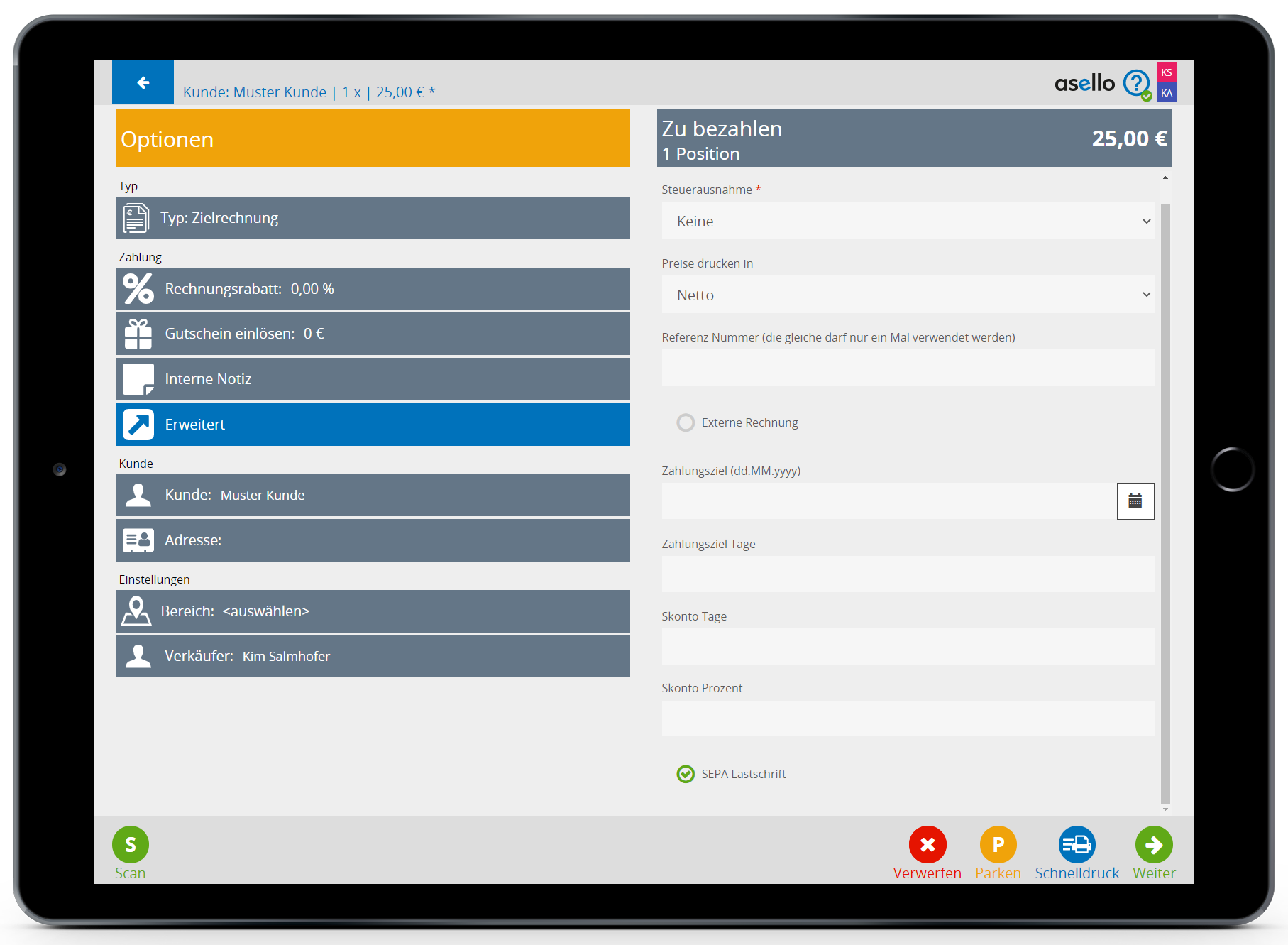 Eine Rechnung kann nur mittels Bankeinzug verrechnet werden, wenn beim Kunden ein SEPA Lastschriftmandat hinterlegt ist.