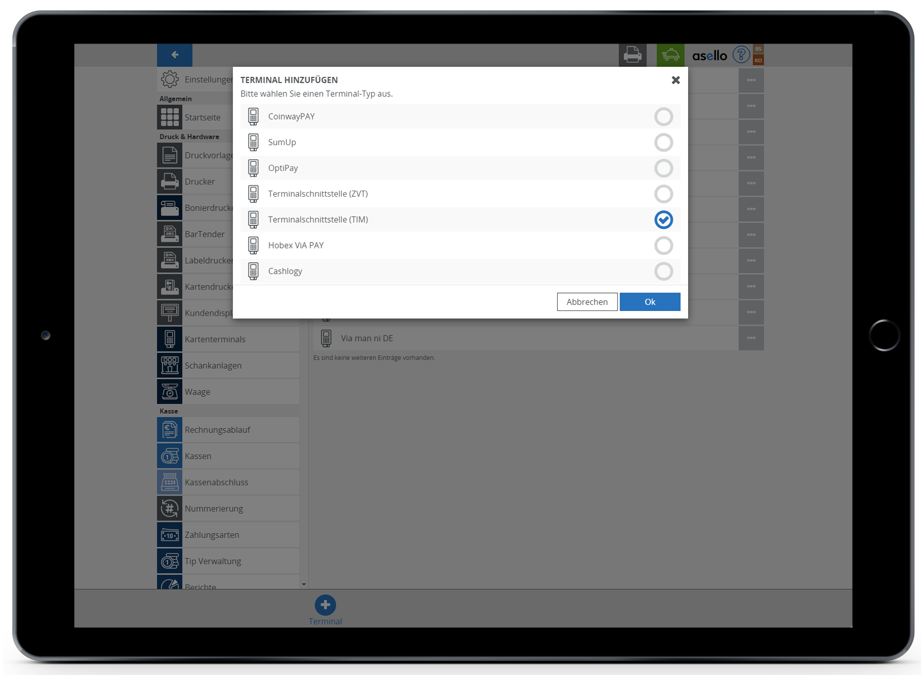 Mit der TIM Schnittstelle können Sie Ihre Kartenterminals mit aselloPOS verknüpfen.