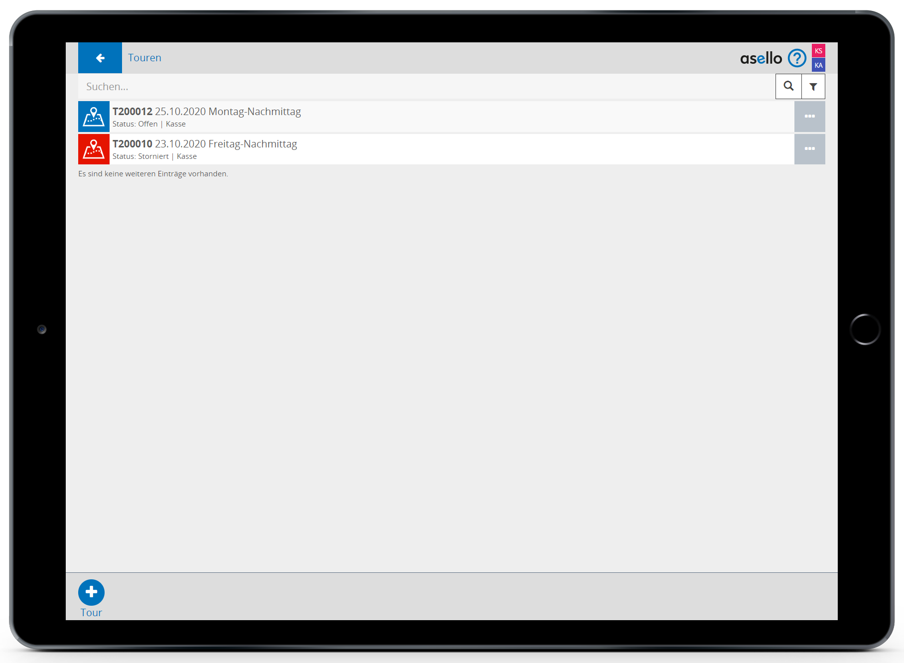 Diese erscheint nun in der Kachel „Aktuelle Tour“.