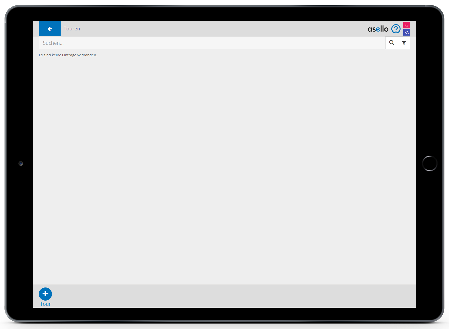 Um Ihre Aufträge zu Touren hinzuzufügen, müssen Sie zuerst eine neue Tour erstellen. Klicken Sie dazu auf dem Startbildschirm im linken oberen Eck auf das blaue Symbol mit den neun Kacheln, um zu „Apps“ zu gelangen. Hier finden Sie unter der Überschrift „Tourenplanung“ die graue Kachel „Touren“. Mit einem Klick darauf öffnen Sie die Übersicht Ihrer Touren.