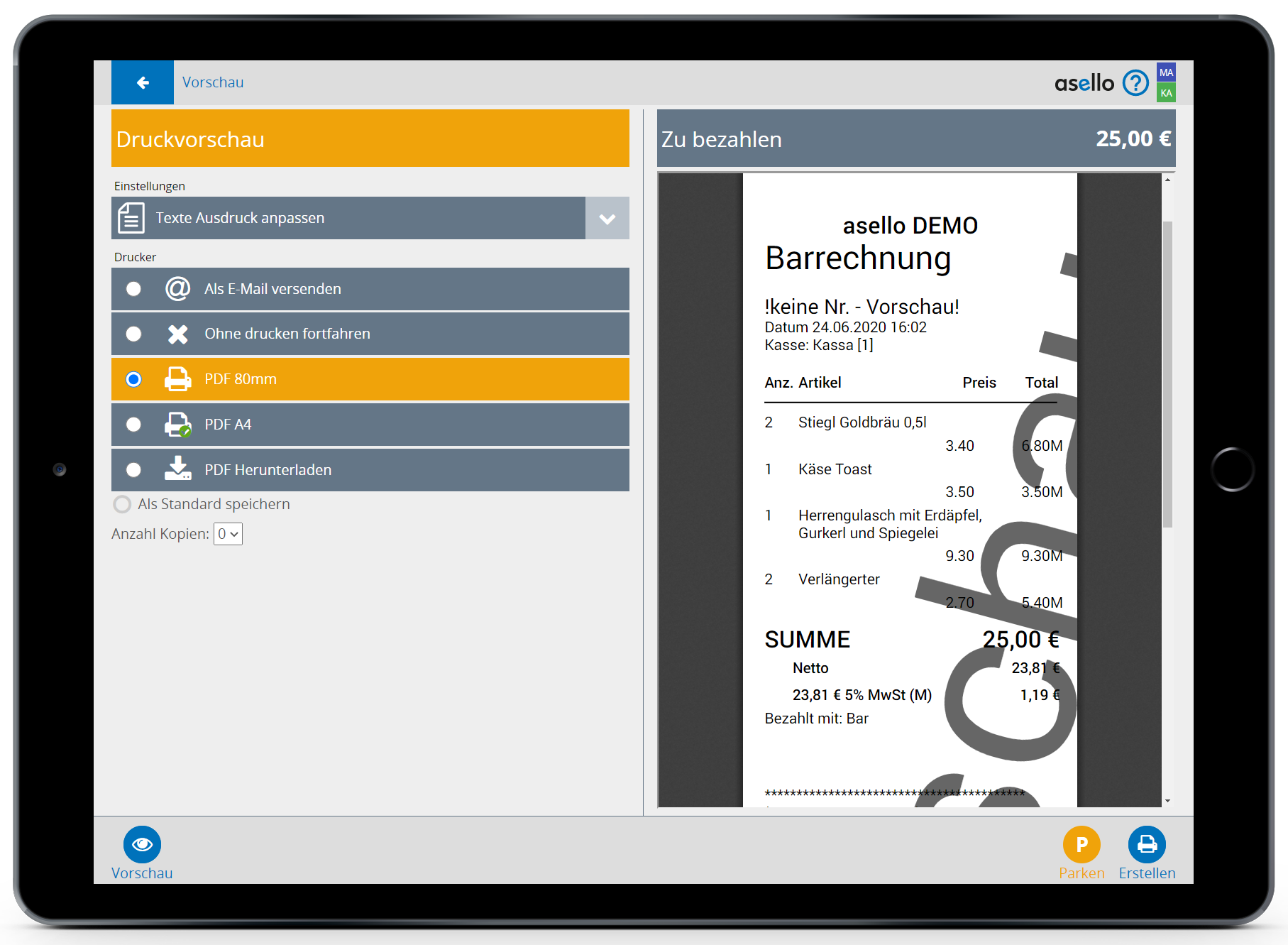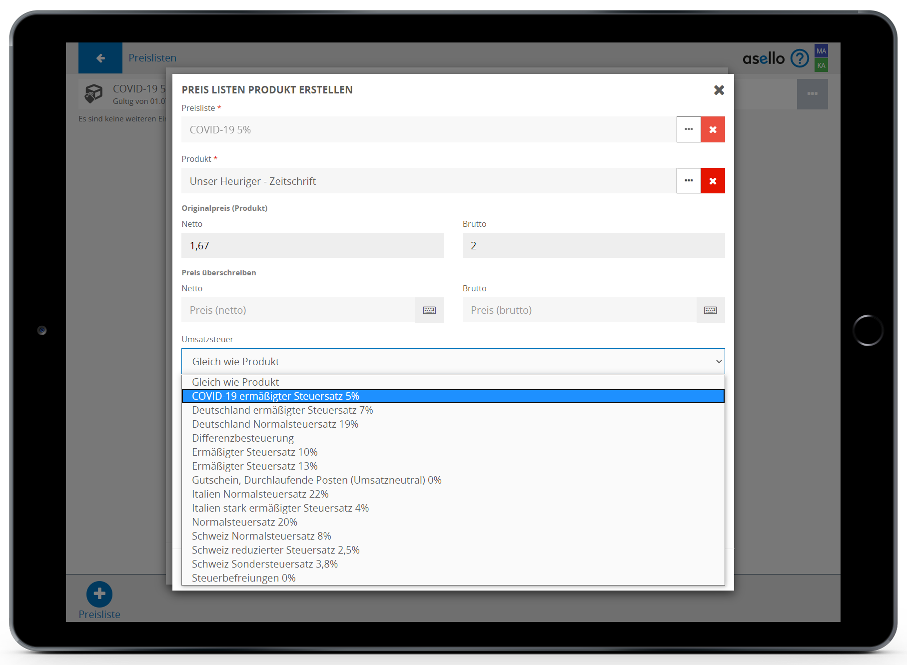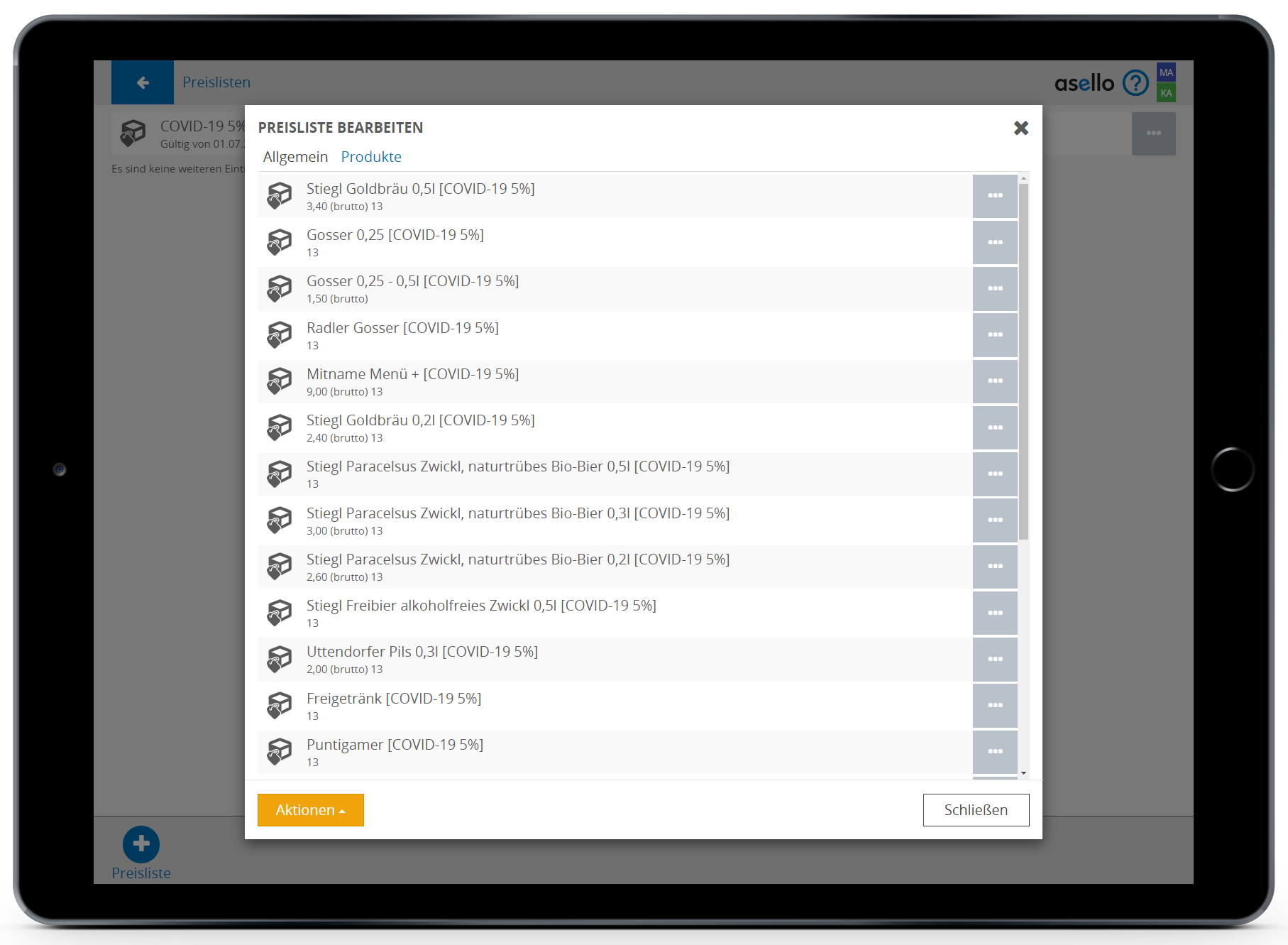 Nach der Bestellung des Preislistenmoduls müssen Sie auf jedem Gerät einmal Einstellungen > Neu laden ausführen.