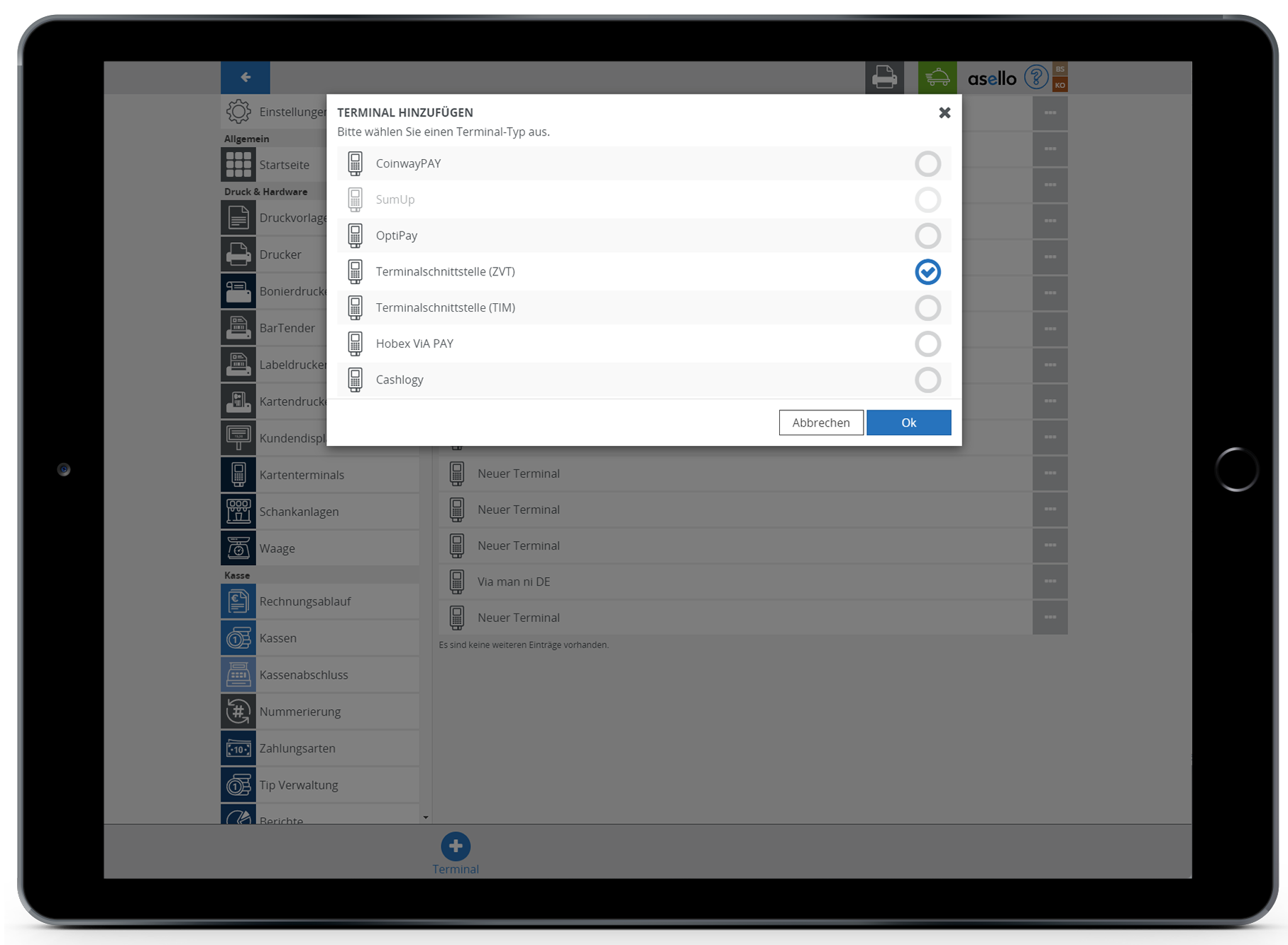 Mit der ZVT Schnittstelle können Sie Ihre Kartenterminals mit aselloPOS verknüpfen.