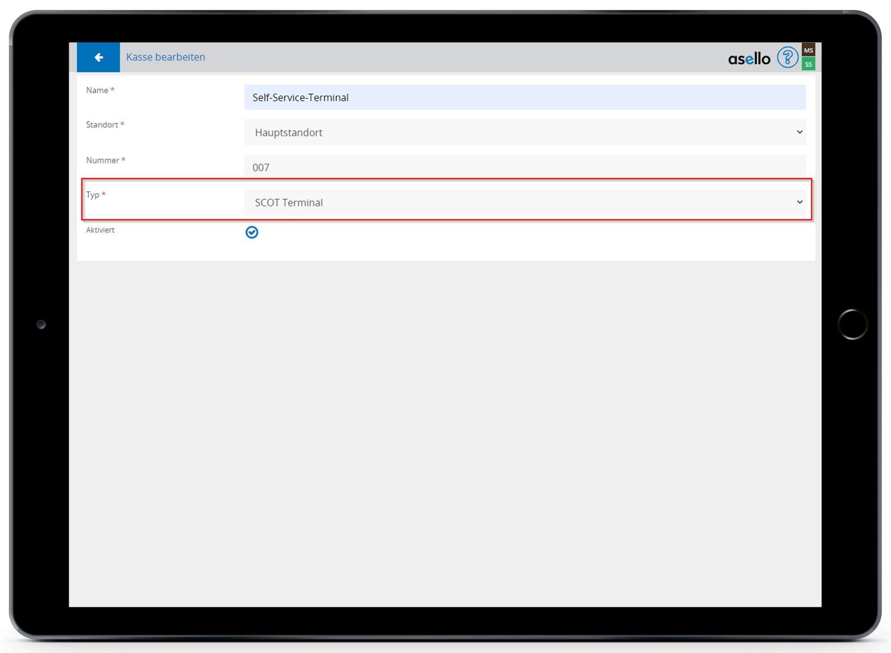 Wichtig ist, dass Sie unter "Typ" den Punkt "SCOT Terminal" auswählen.