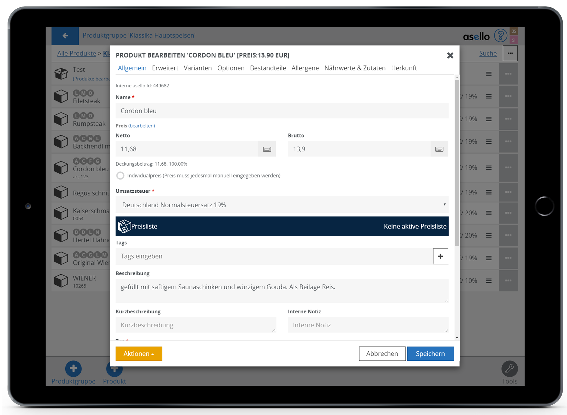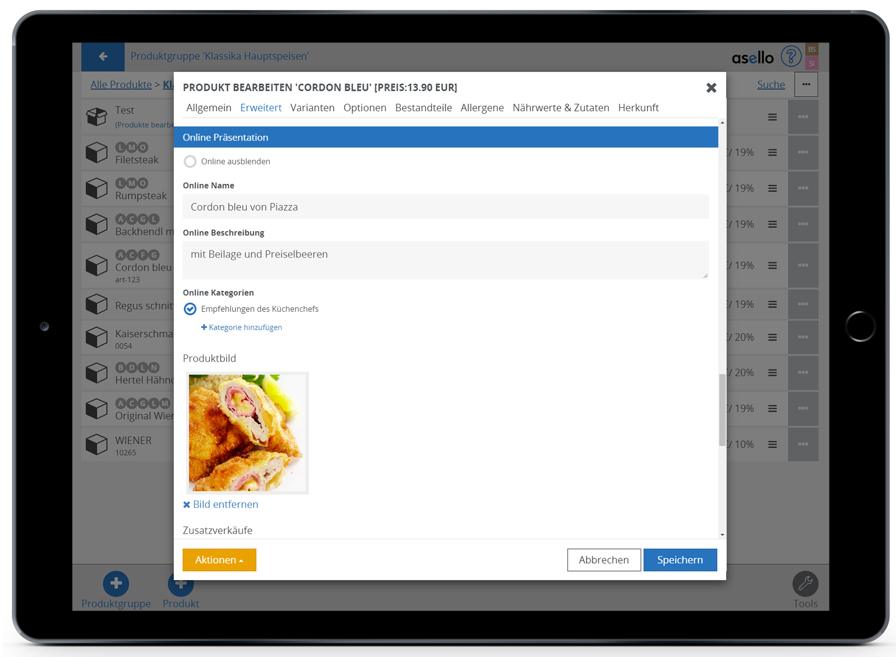 Um die Darstellung Ihrer Produkte anzupassen, öffnen Sie ein Produkt und wählen Sie den Reiter "Erweitert".