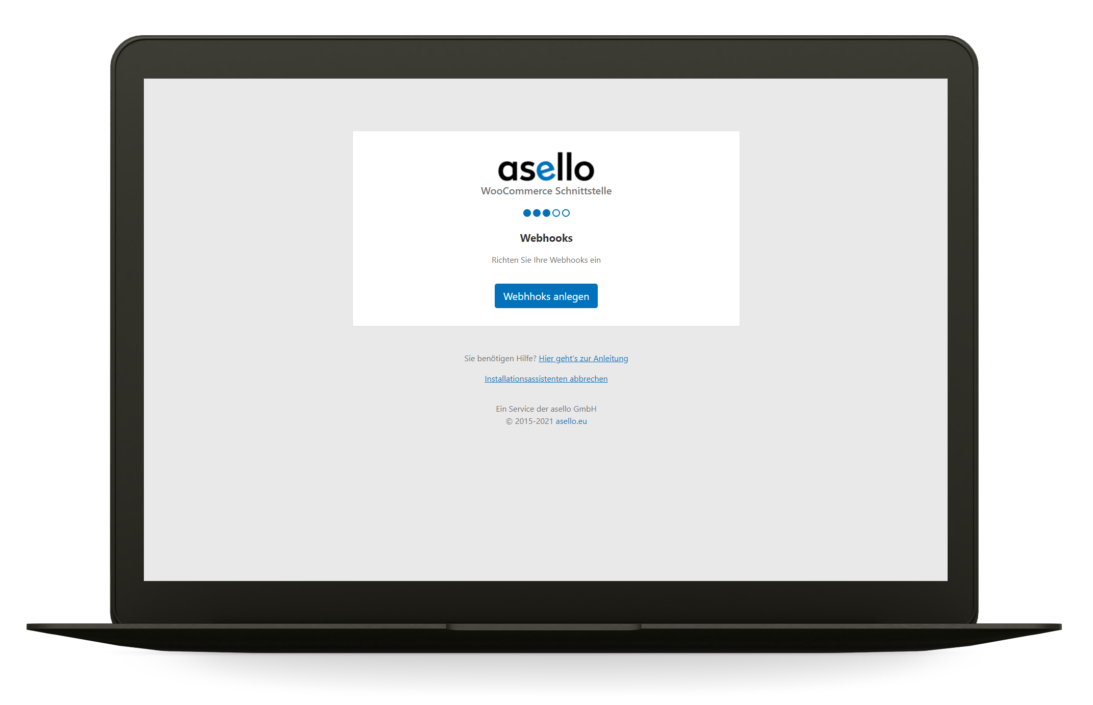 Im nächsten Schritt müssen Sie Webhooksanlegen, damit die Daten zwischen Ihrer asello Kasse und Ihrem Onlineshop automatisch aktualisiert werden. Klicken Sie dazu auf den blauen Button „Webhooks anlegen“. Anschließend wird Ihnen angezeigt, ob die Webhooks erfolgreich angelegt werden konnten.