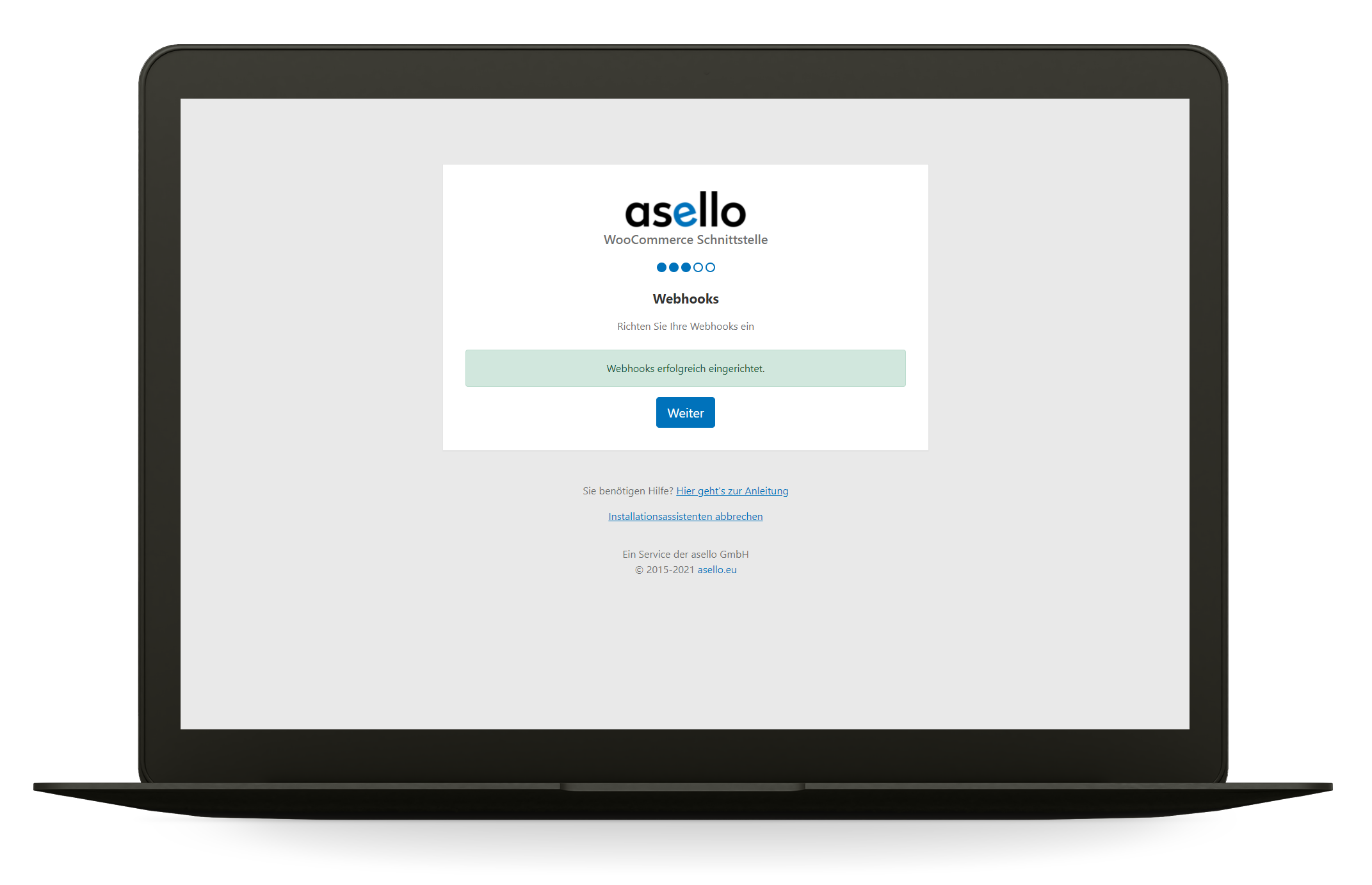 Nachdem die Webhooks erfolgreich angelegt wurden, klicken Sie auf den blauen Button „Weiter".