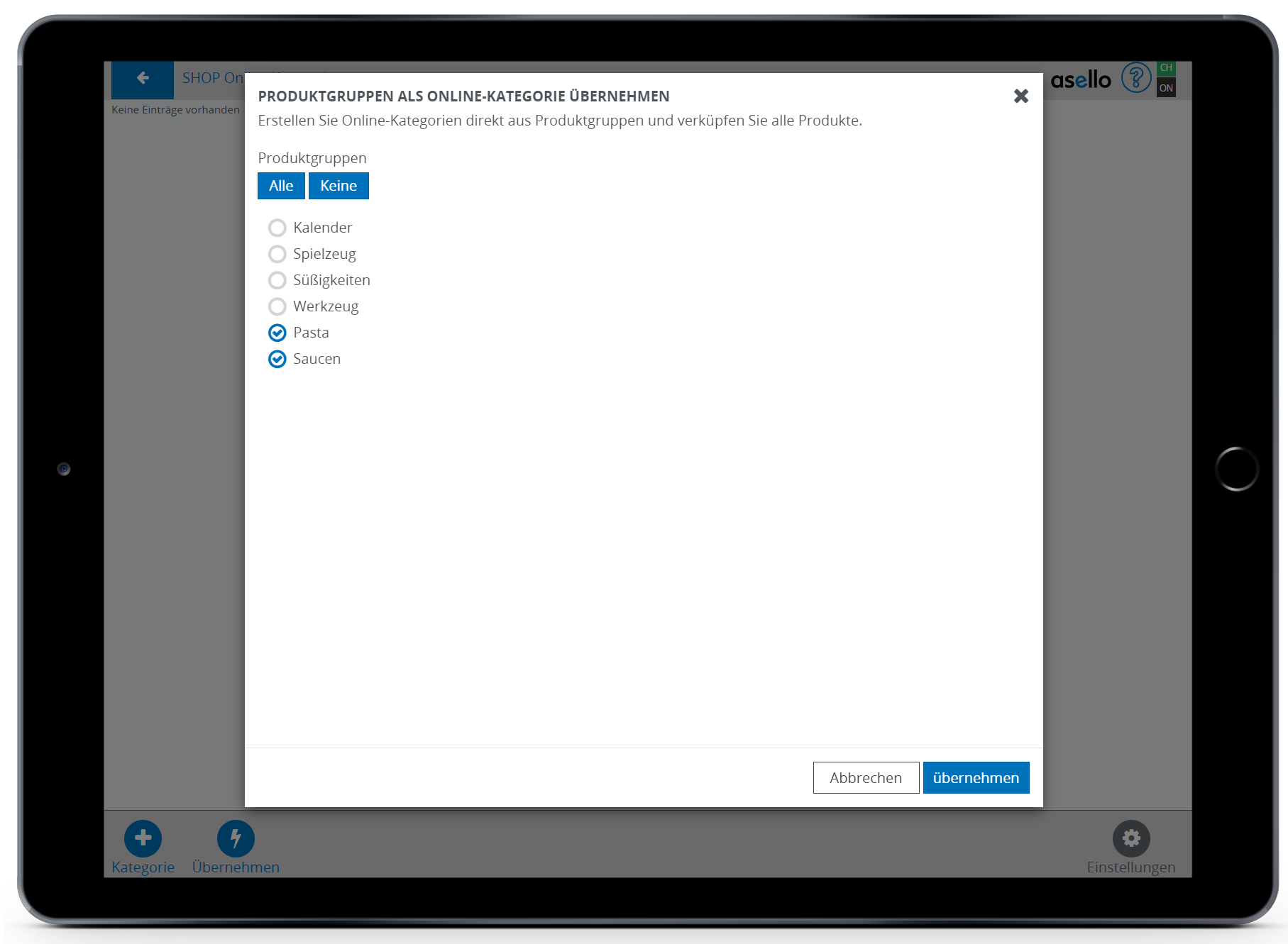 In diesem Leitfaden erfahren Sie, wie Sie in aselloPOS Online Kategorien erstellen und Produkte zu diesen hinzufügen können. Online Kategorien benötigen Sie, damit die gewünschten Produkte aus aselloPOS in ihrem Onlineshop angezeigt werden.