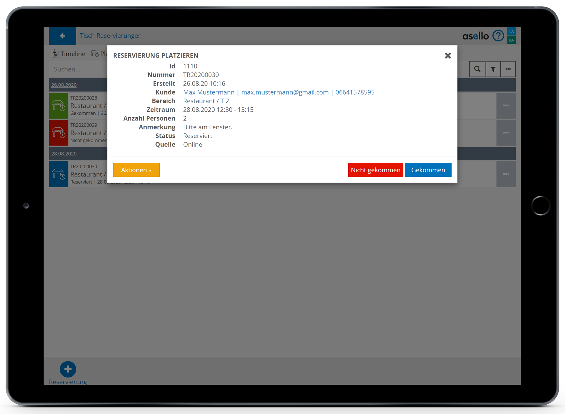 Nun erscheint ein Pop-Up-Fenster in dem Ihnen alle Informationen zur Reservierung angezeigt werden.