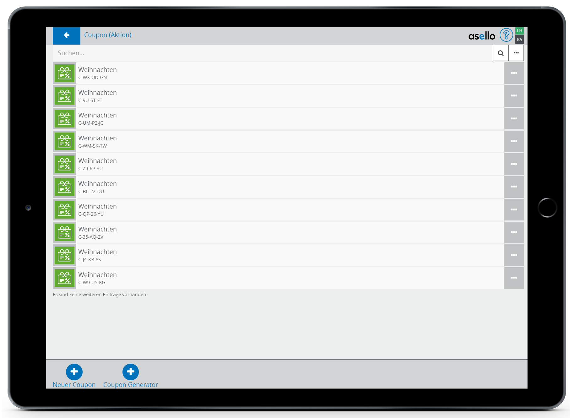 Wie Sie einen Coupon erstellen oder generieren können, erfahren Sie im Leitfaden asello Coupon.