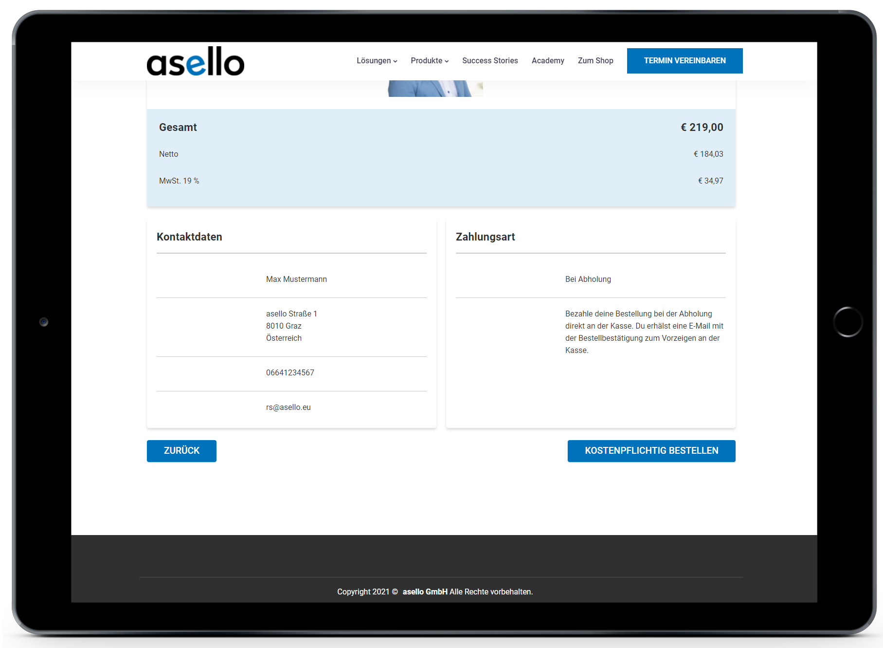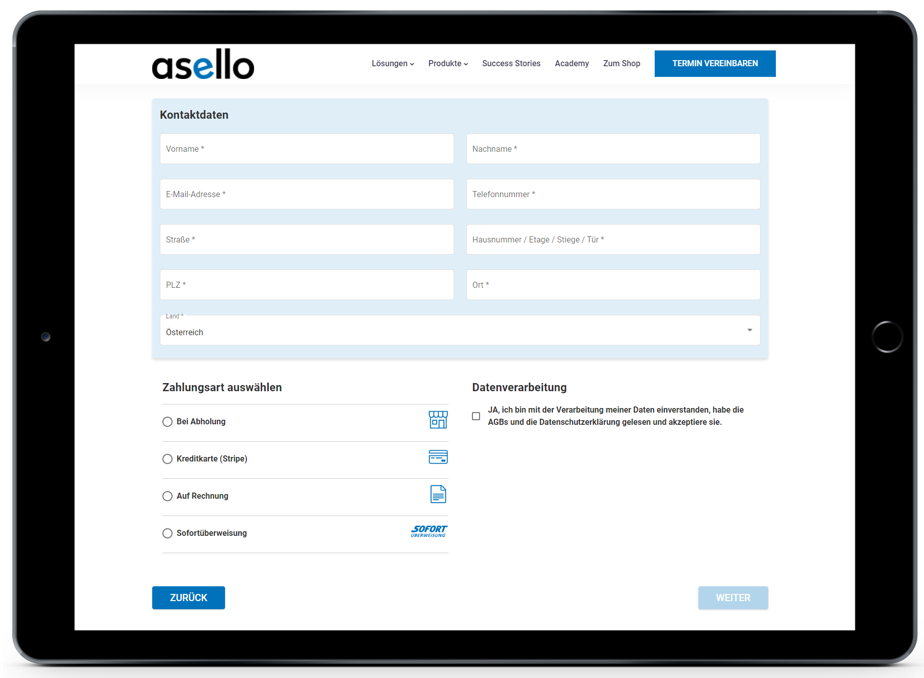 Kontaktdaten & Zahlungsart