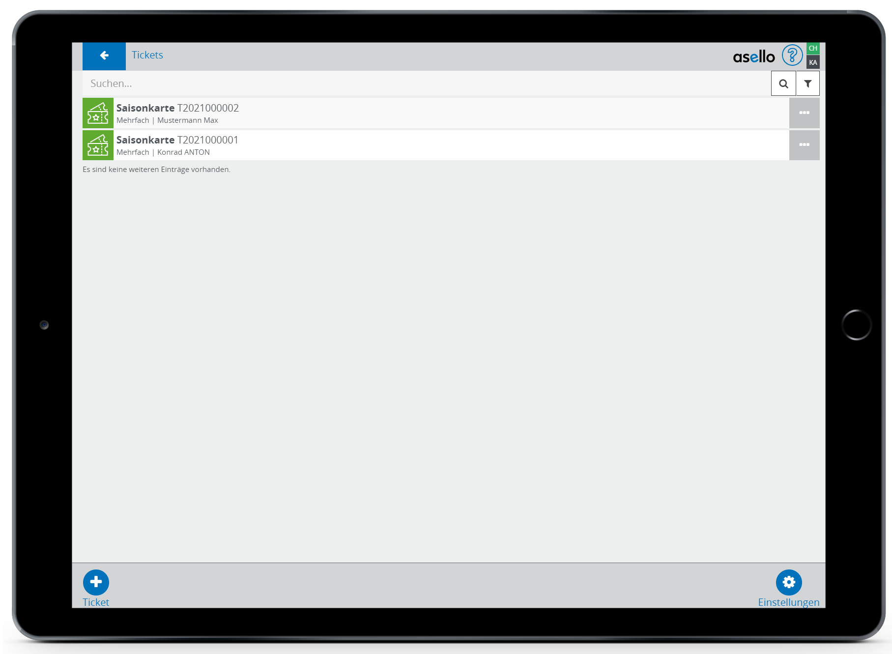 Mit der Suchleiste können Sie gezeilt nach einem Ticket suchen.