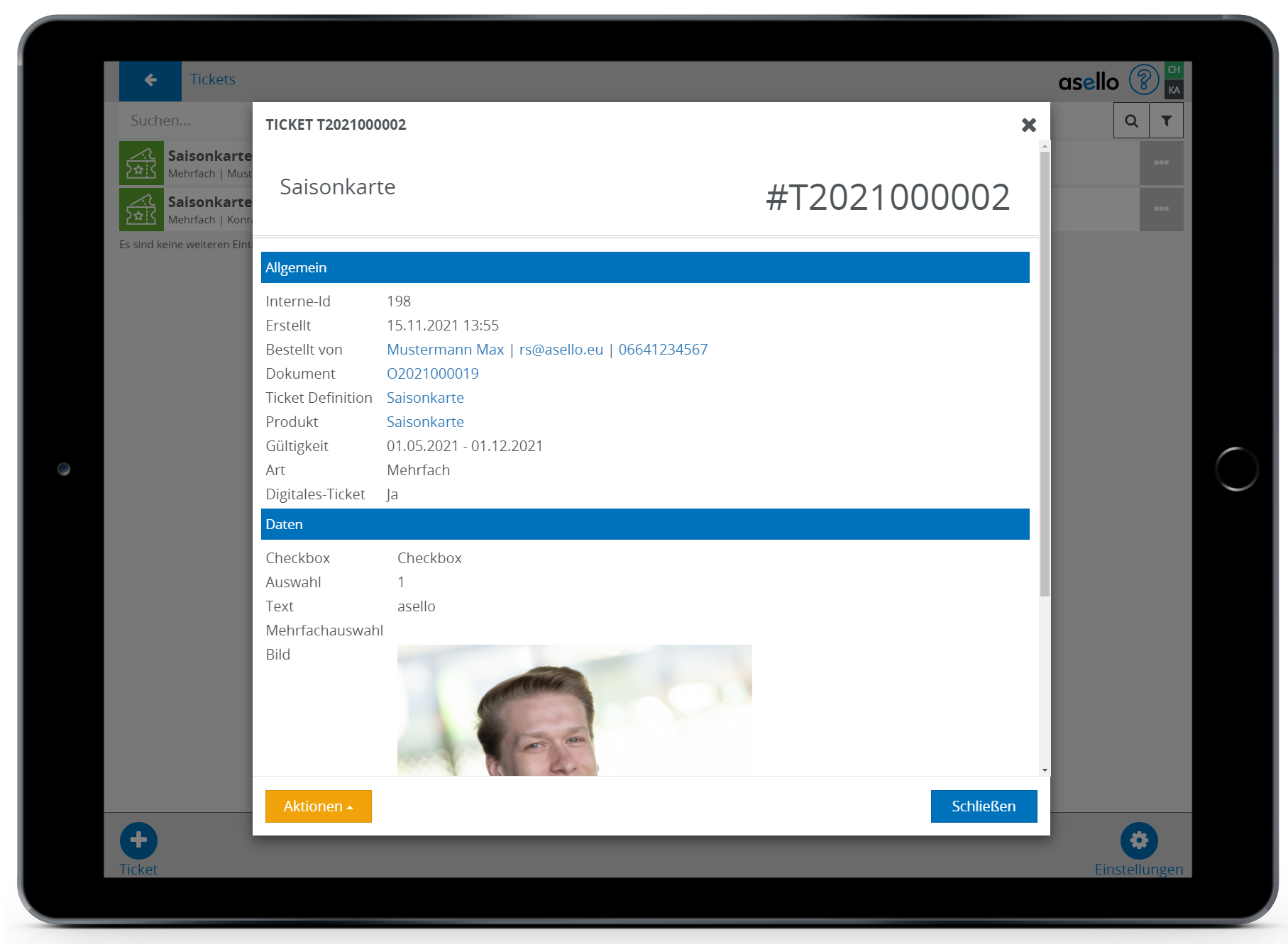 | Digitales Ticket | Mit dieser Aktion können Sie das digitale Ticket an eine beliebige E-Mail-Adresse senden. |