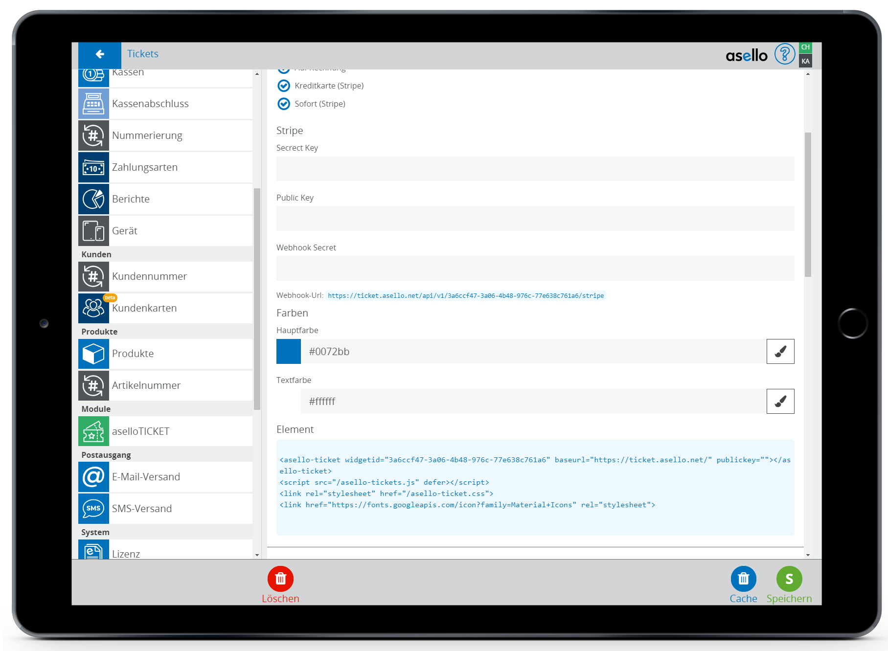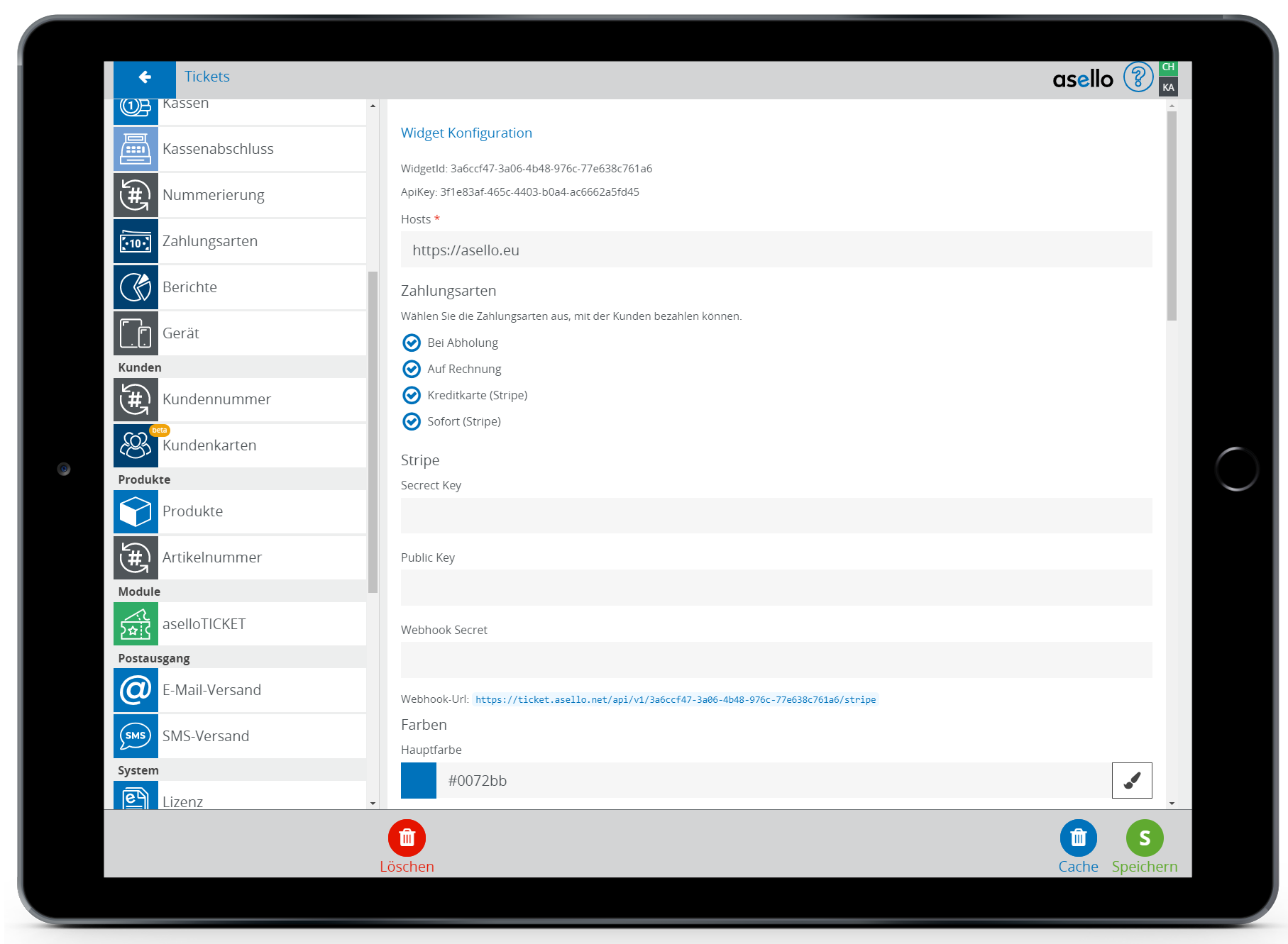 Nun erscheint auf der rechten Seite der Konfigurationsbereich des aselloTICKET-Shops.