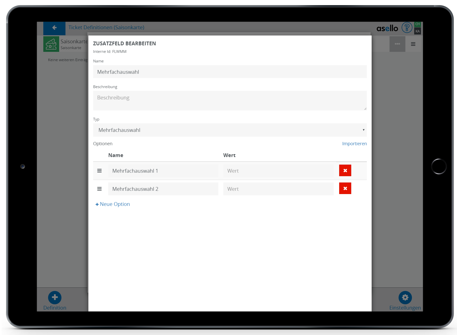 Das Abfragen von zusätzlichen Daten ist dann erforderlich, wenn Sie das Ticket personalisieren möchten. Ein Beispiel dafür wäre eine Saisonkarte.
