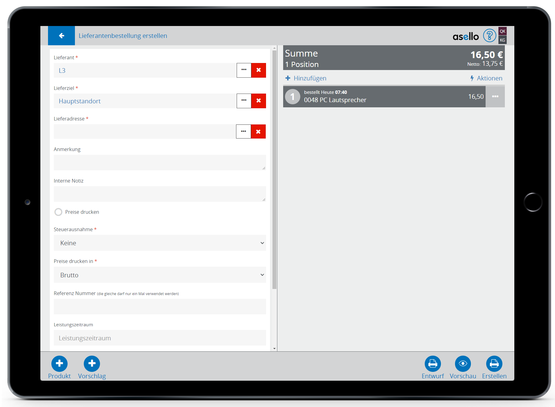 Je nach Verfügbarkeit kann die Ware bei einem Lieferanten bestellt werden (Lieferantenbestellung) oder direkt zur Verpackung ins Lager gegeben werden (Versand vorbereiten).